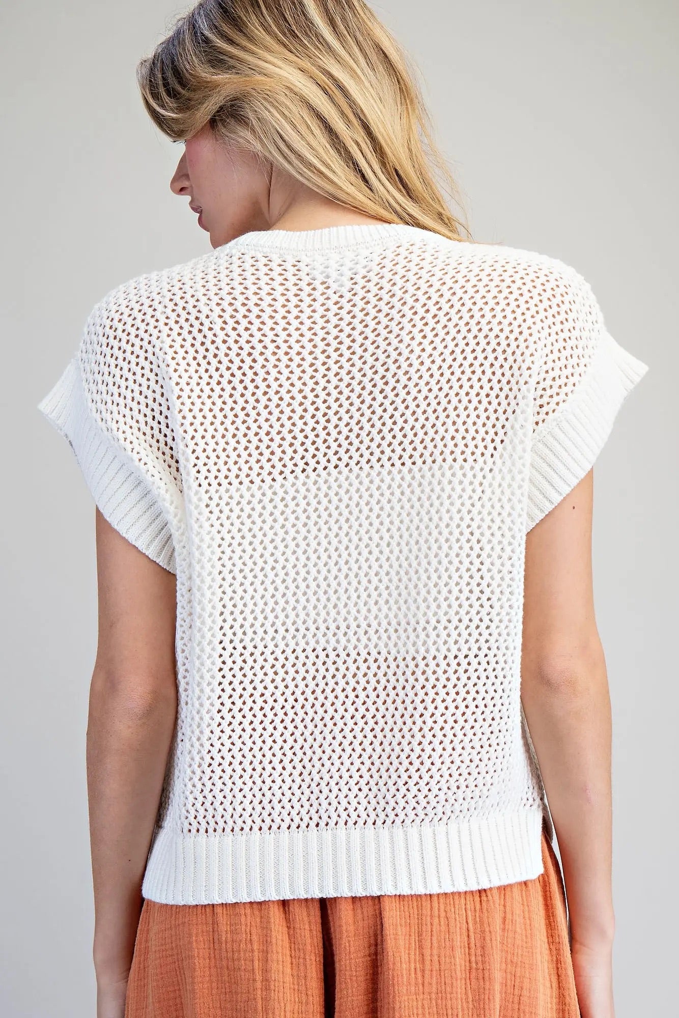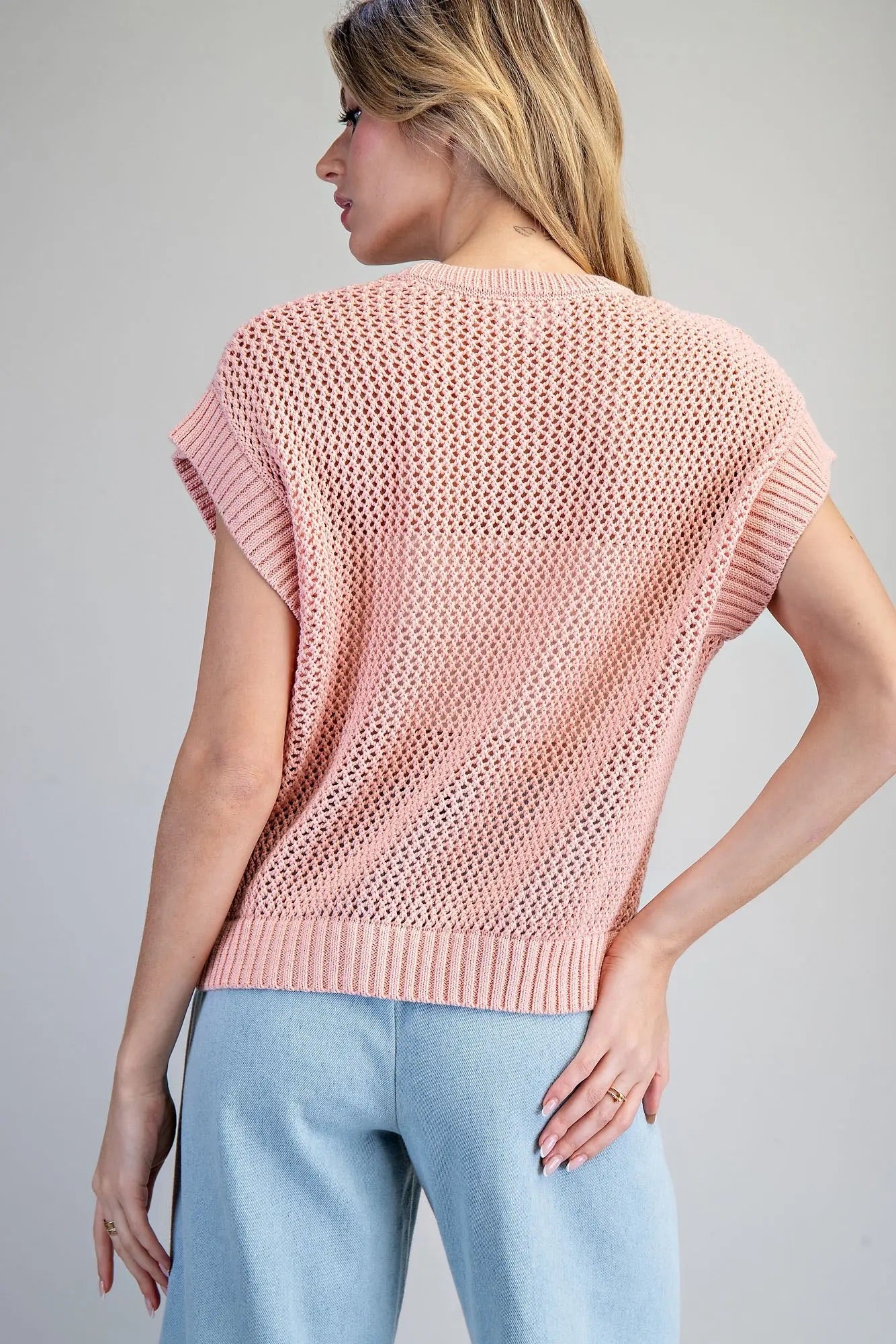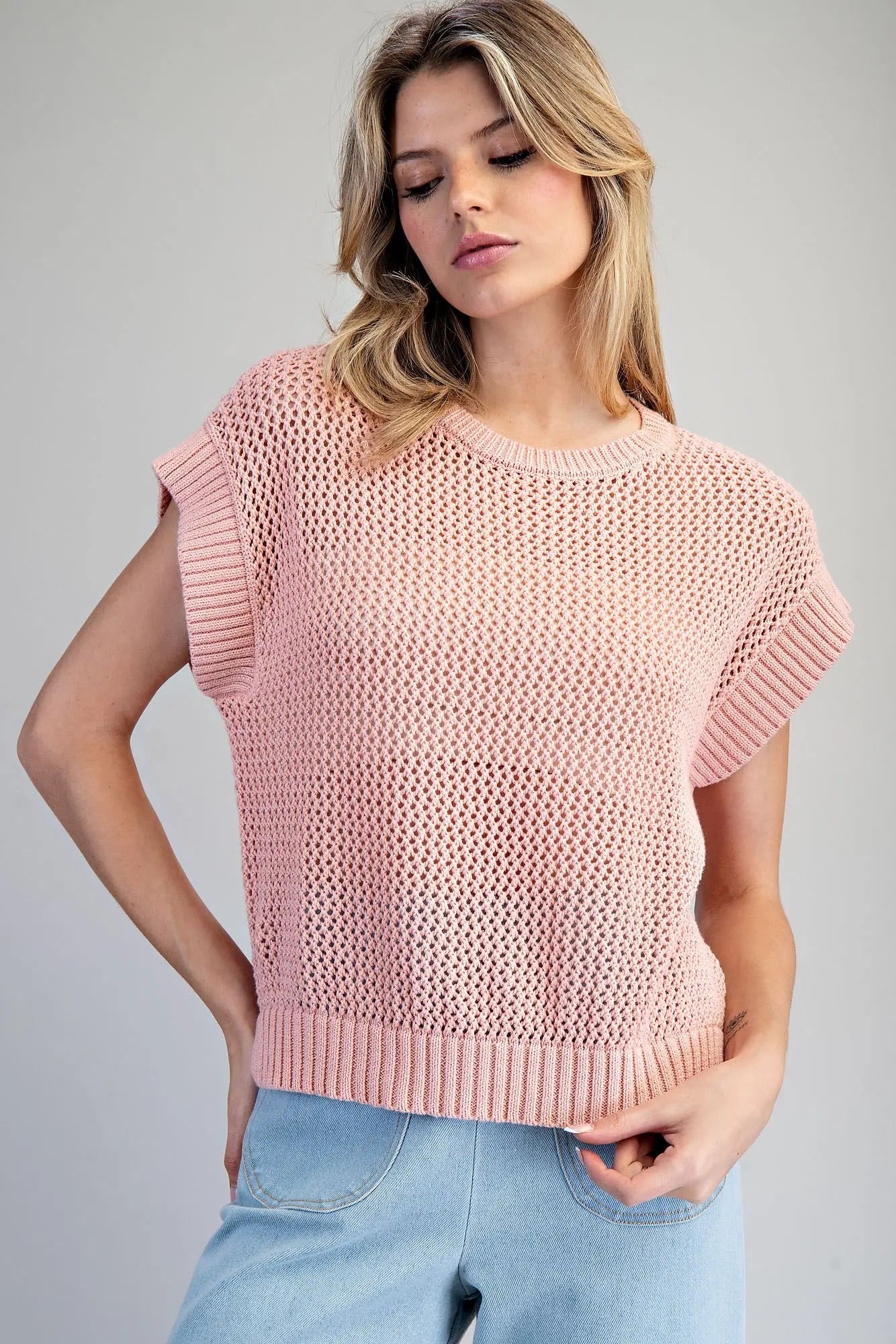Introducing the Khloe Open Knit Sweater: your go-to for effortless cool. With a relaxed fit, airy mesh stitching, and wide ribbed cuffs, this top brings a breezy, laid back vibe to any outfit. Perfect for easy style all year round!