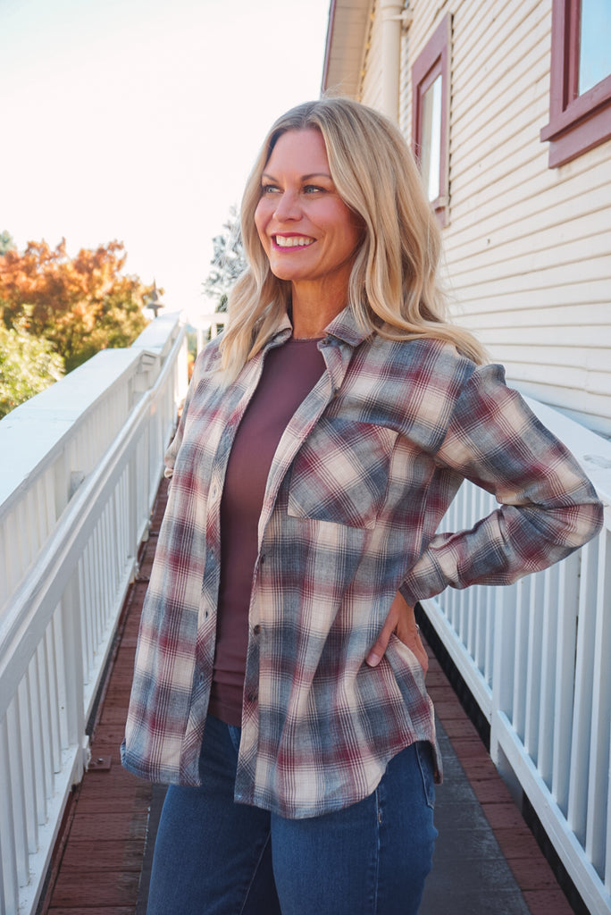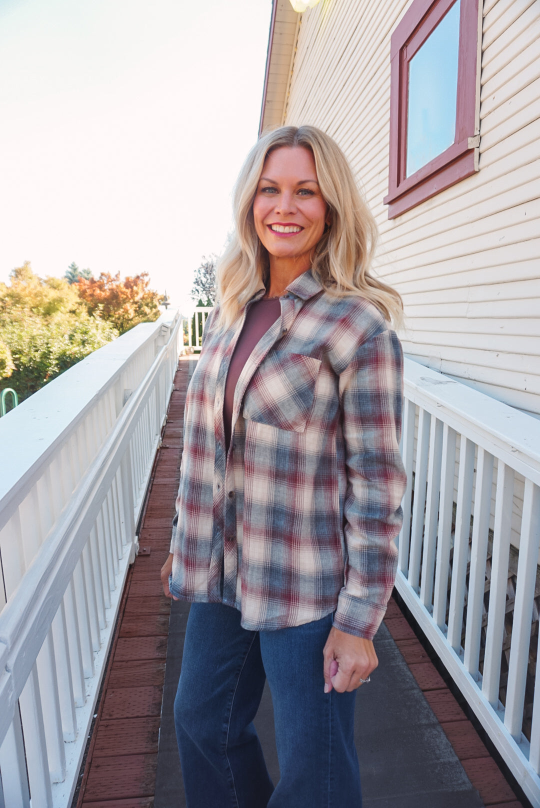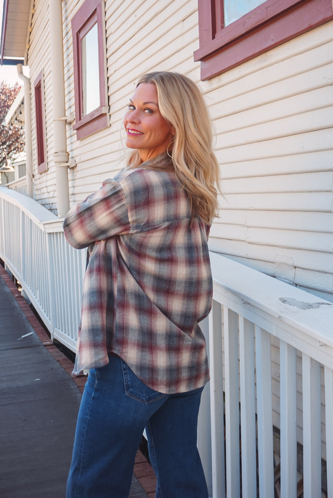 Introducing the Lucia Plaid Shirt, featuring a classic plaid pattern and a relaxed, oversized fit. With a button down front, single chest pocket, and long sleeves, this shirt is both stylish and comfortable. Made with ultra-soft fabric and a below the hip length, it's perfect Fall plaid.