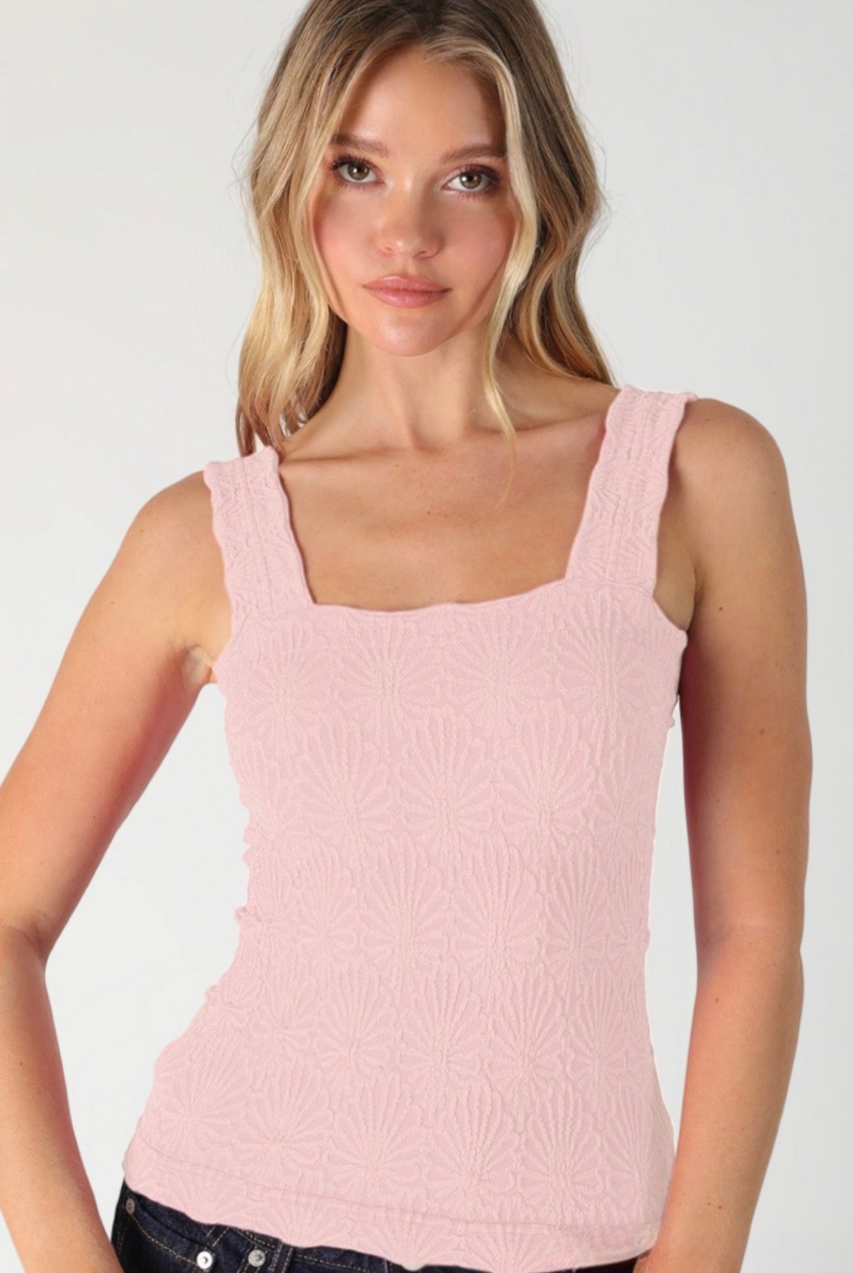 Square up your style with the NikiBiki Lace Textured Square Tank! This tank features a playful square neck and a beautiful floral lace texture, adding a touch of fun to any outfit. Stay cool and stylish in this versatile tank.