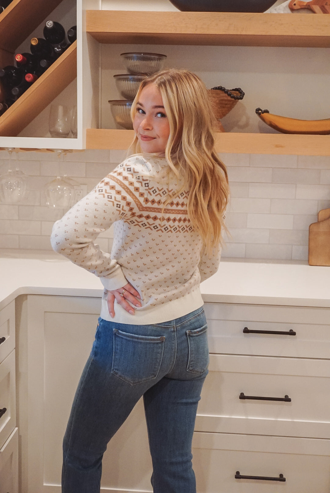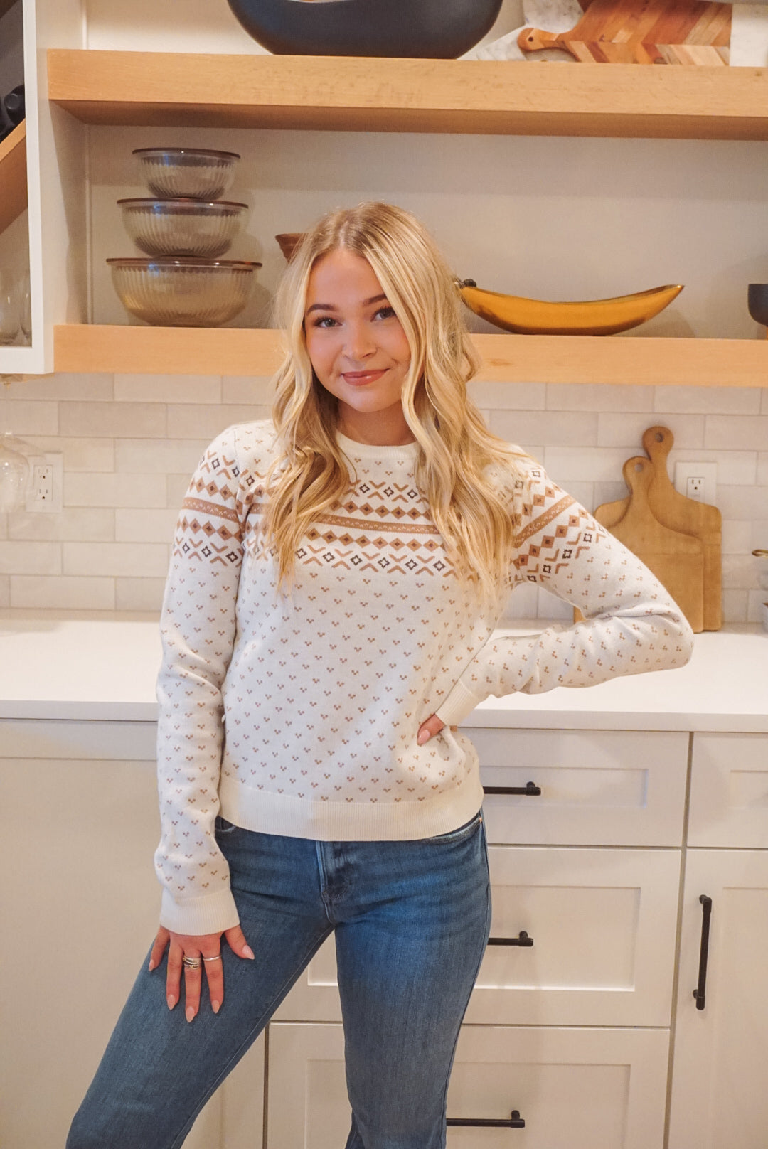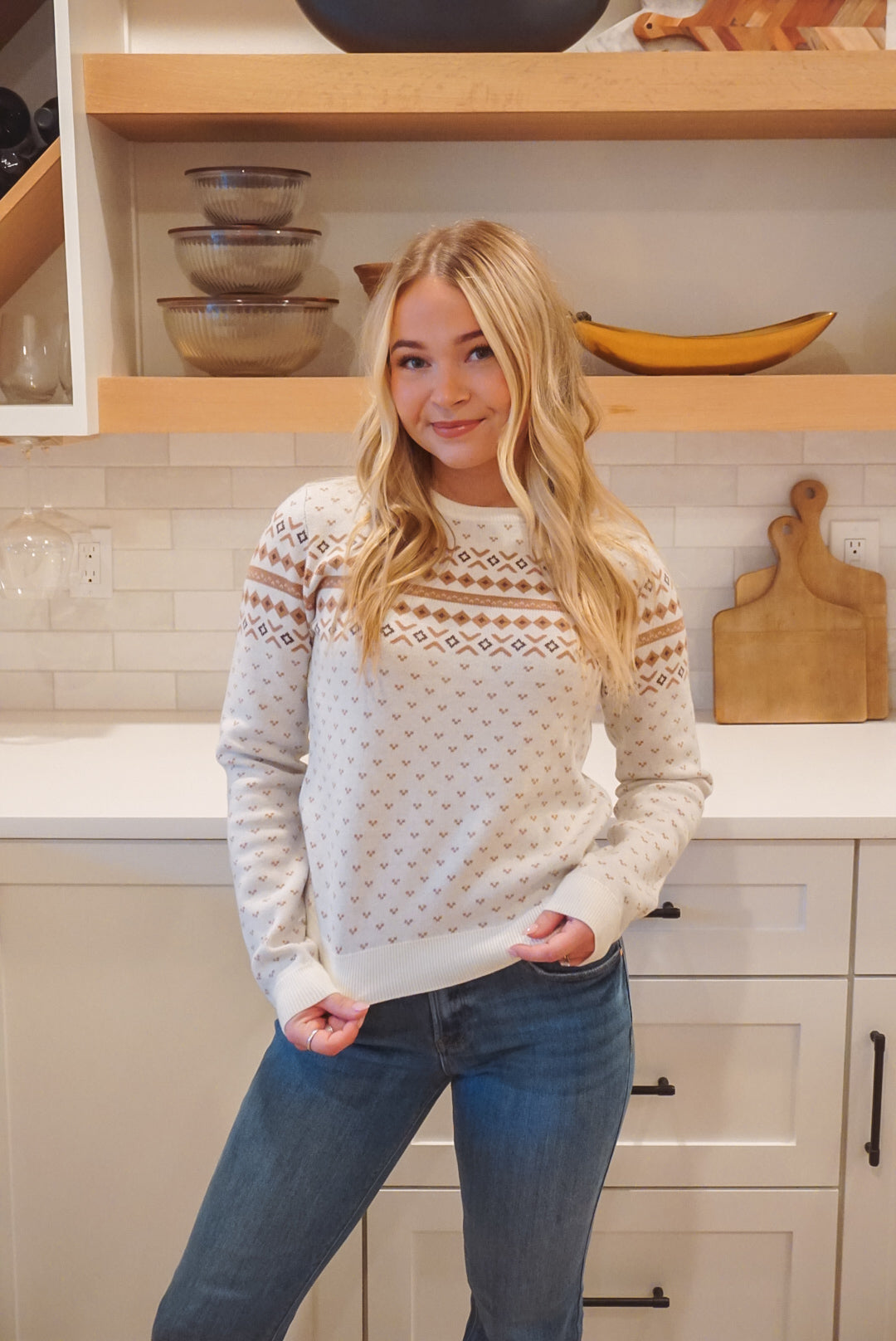 Channel cozy vibes with the Raelyn Sweater. This lightweight knit sweater features a round neck and long sleeves to keep you warm. The ribbed accents add a touch of texture, while the patterned design adds a playful touch. Style solo or wear layered under your favorite vest!