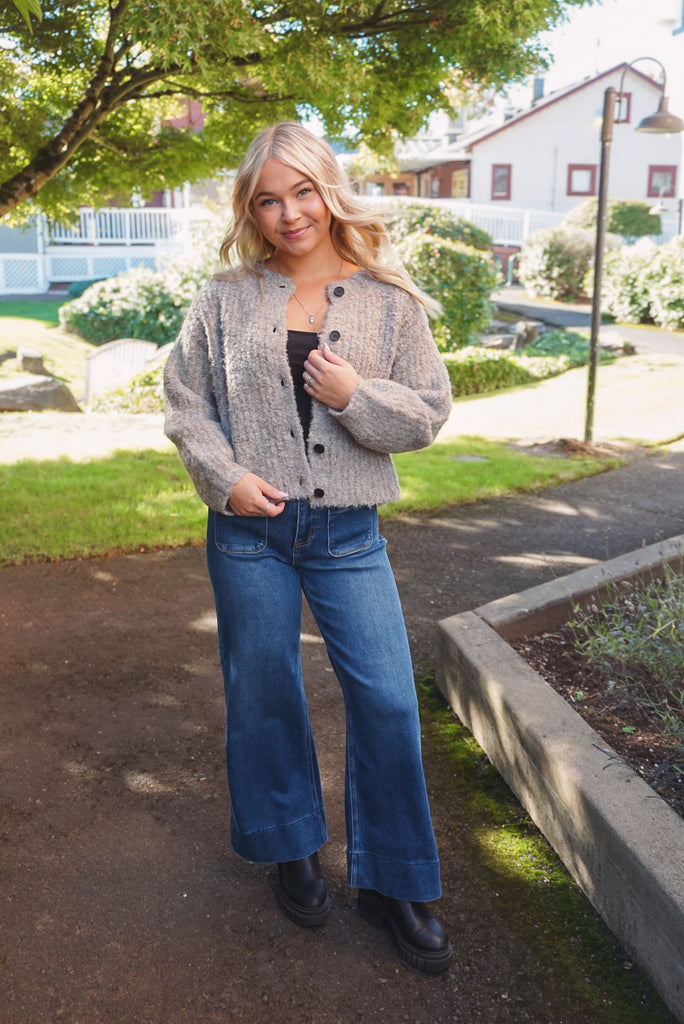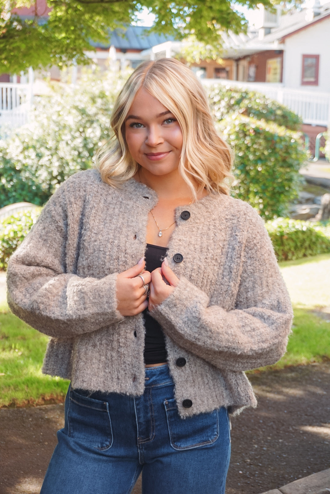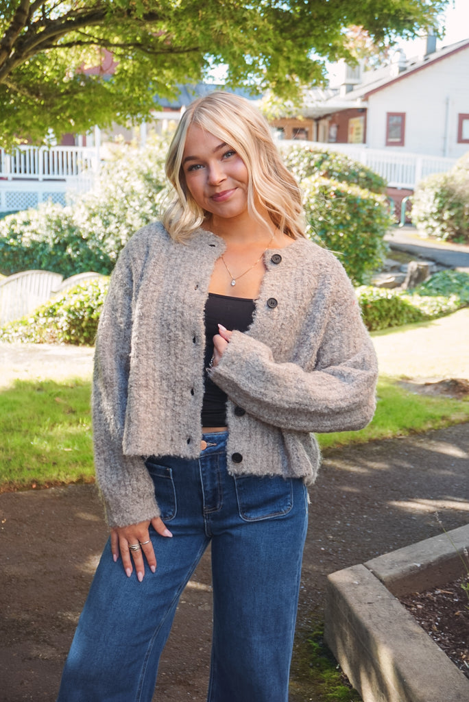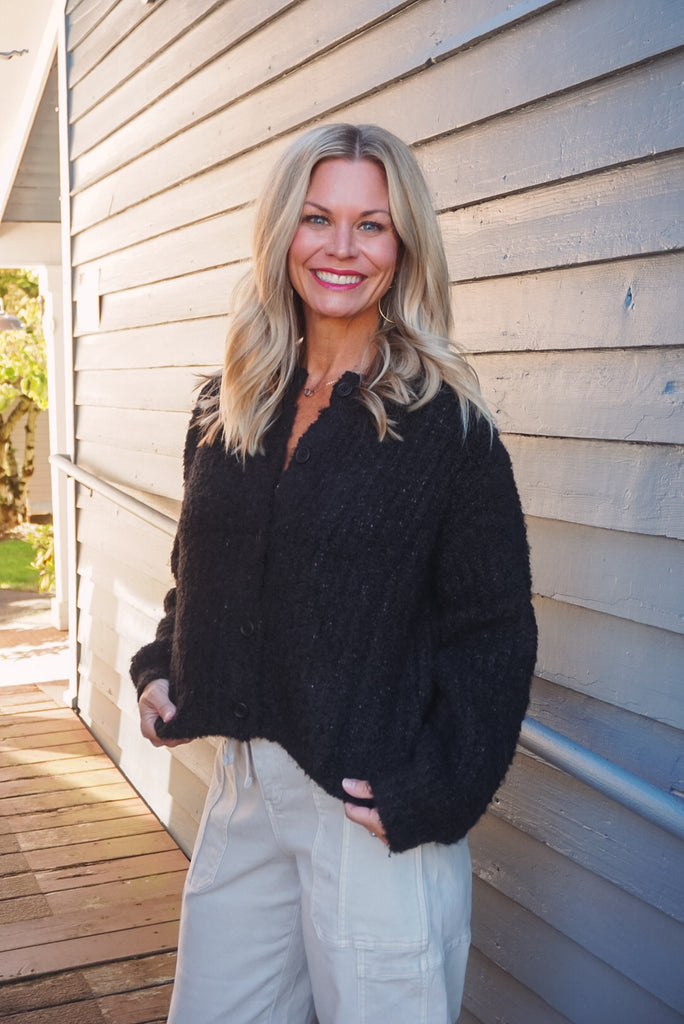 Get ready to snuggle up in our Amelia Cardigan! This cozy boucle knit cardigan features a round neckline, button front, and long sleeves, making it the perfect layering piece for any outfit. The ultra-soft texture will have you feeling cozy and stylish all day long. Say goodbye to chilly days with Amelia!