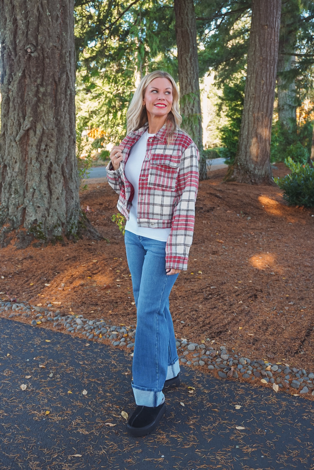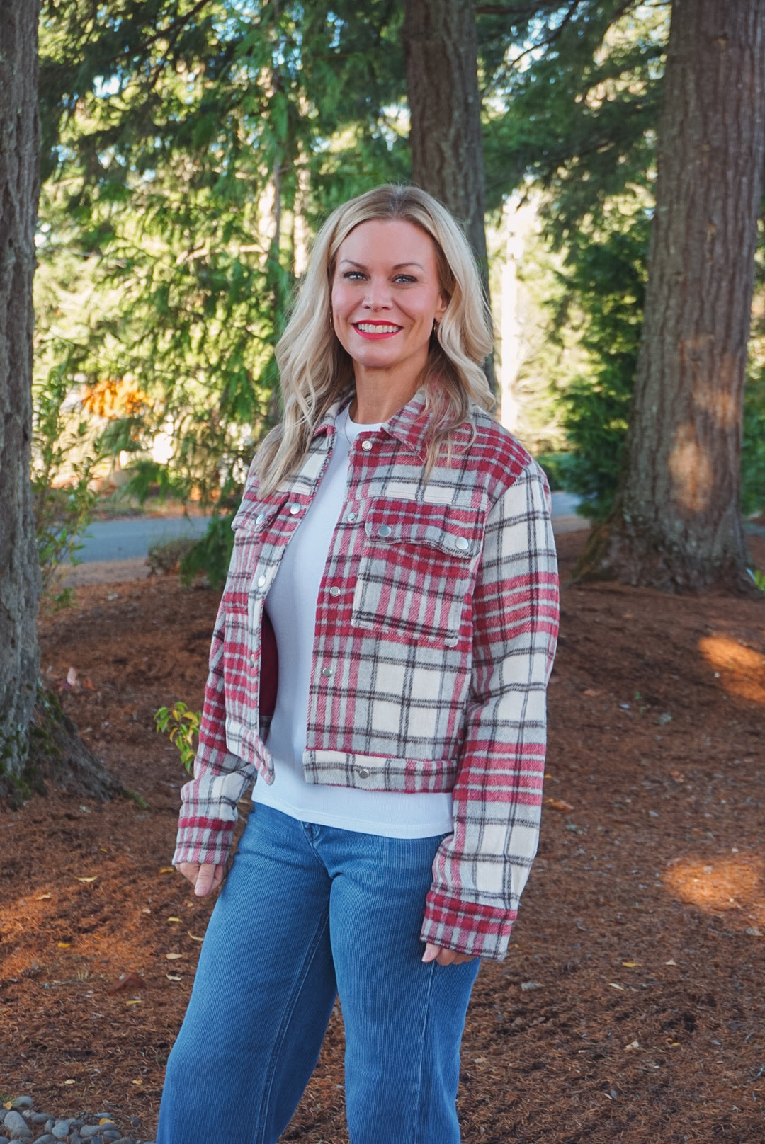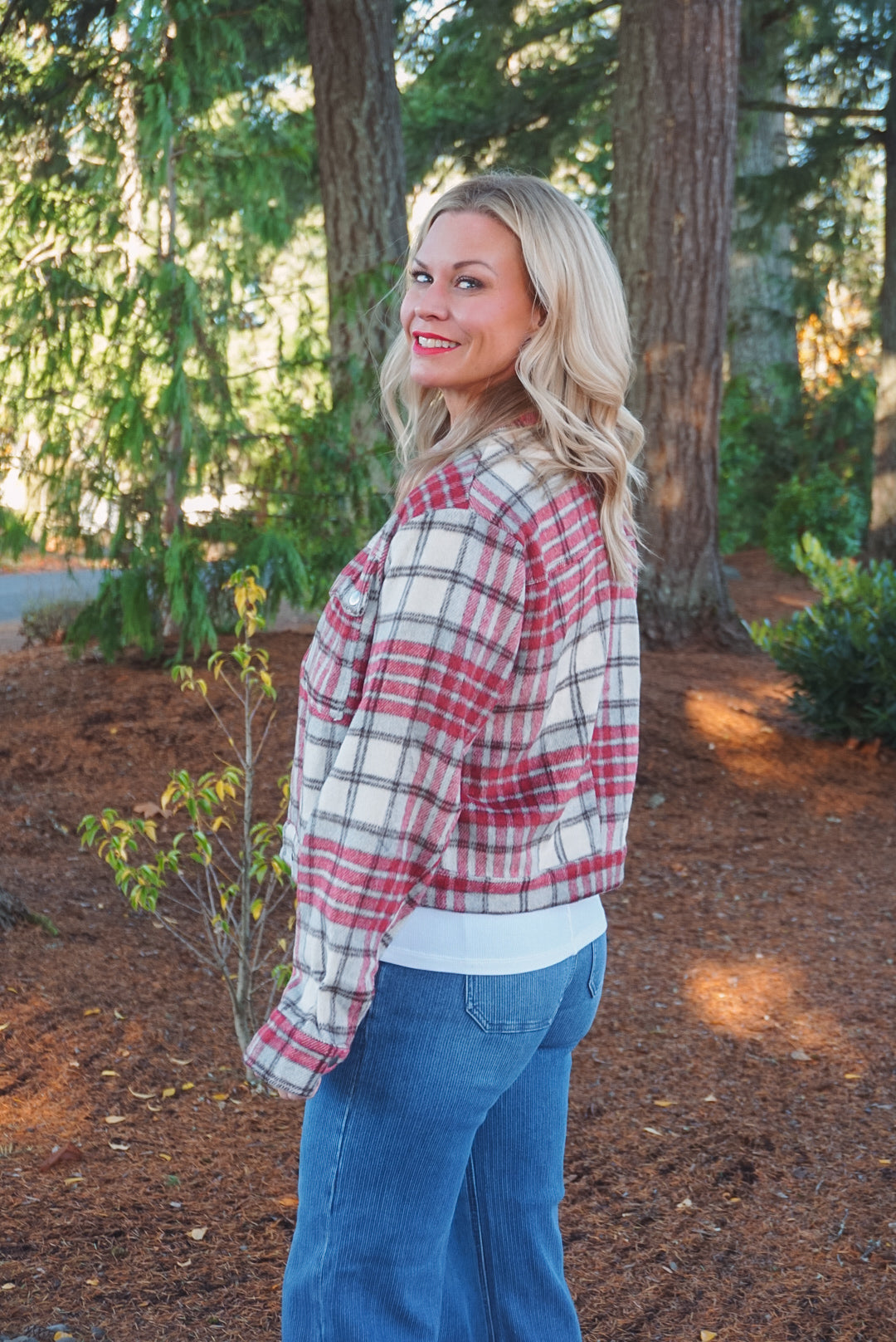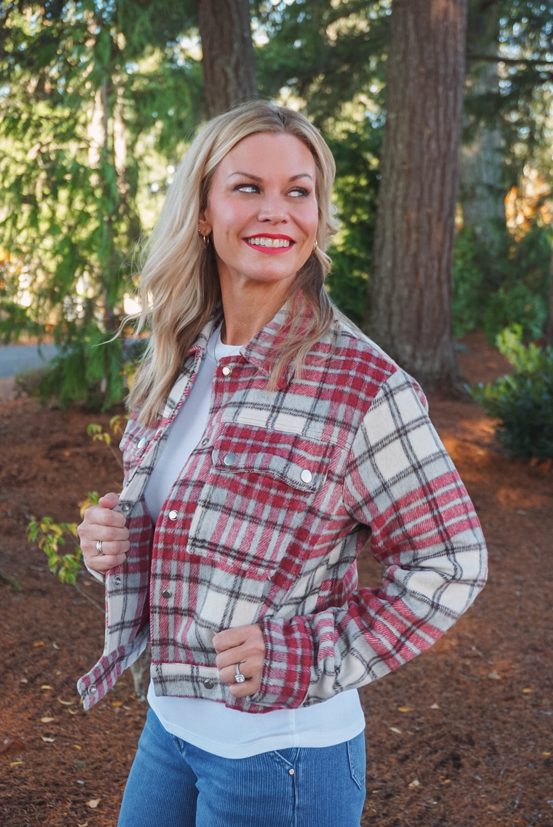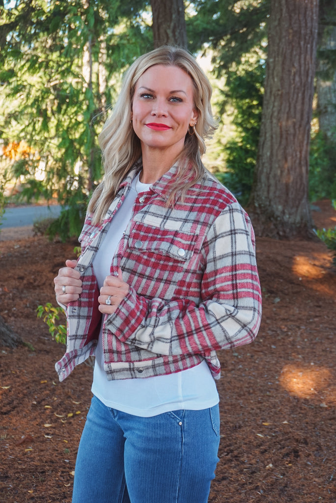 Get ready to conquer the changing seasons in style with the Bess Plaid Jacket. This checkered plaid jacket boasts structured flap pockets, a unique silhouette, and a playful printed design. Layer it over your favorite basics paired with denim for a crisp fall look. With its relaxed fit, it's perfect for both casual outings and a night out on the town.