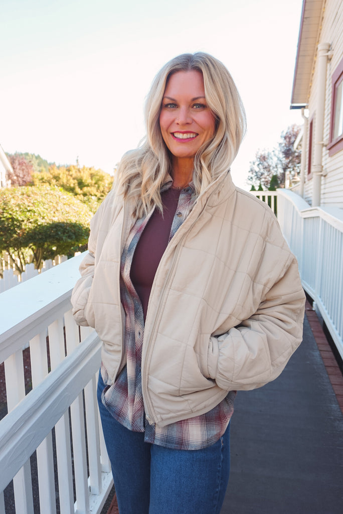 Stay warm in style with the Londyn Jacket. Featuring a mock neckline, long sleeves, and a zip-up design, this puffer jacket is practical and trendy. The quilted pattern adds a stylish touch while the lined interior and pockets provide extra comfort and functionality. Stay cozy this season with the Londyn Jacket.