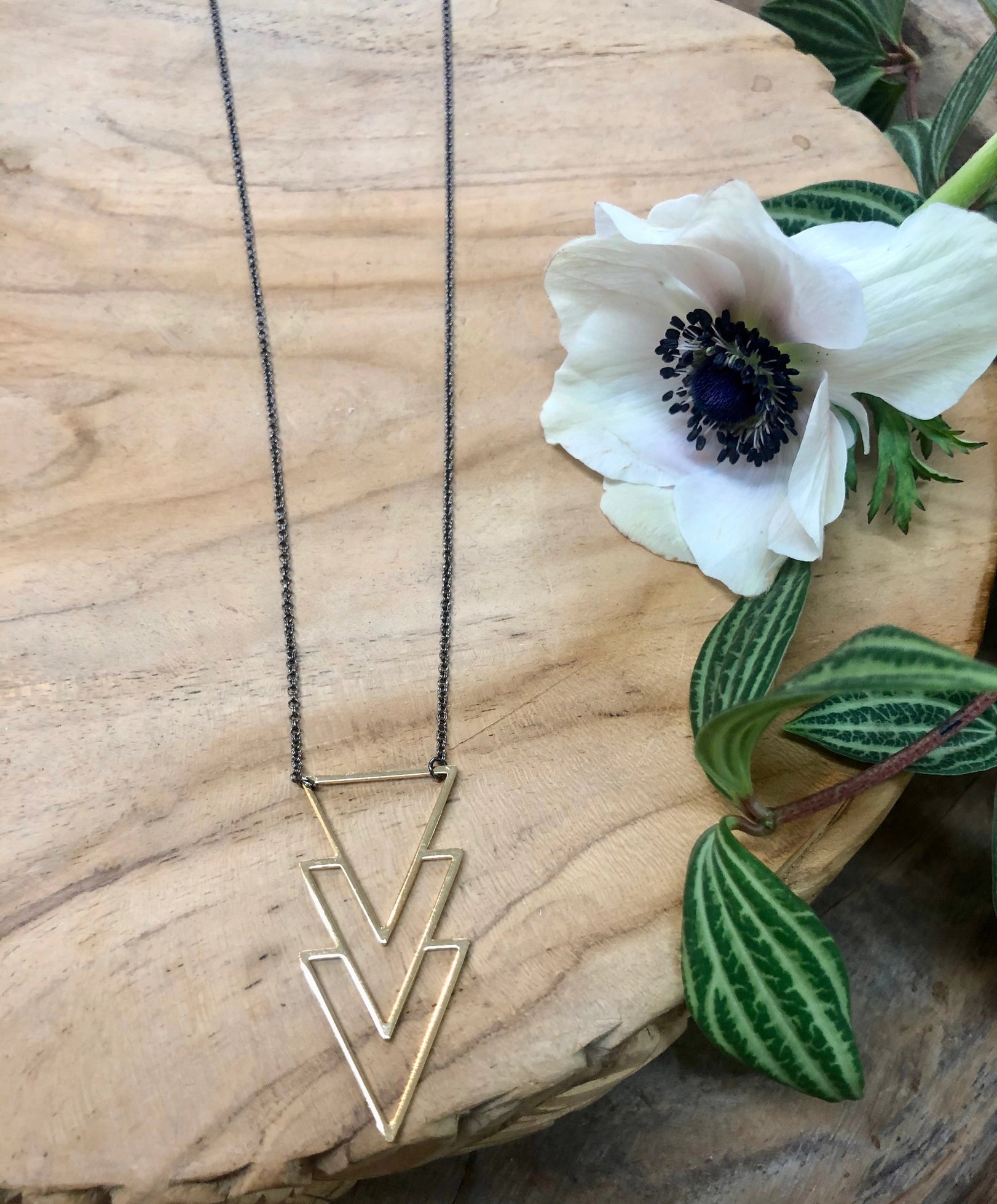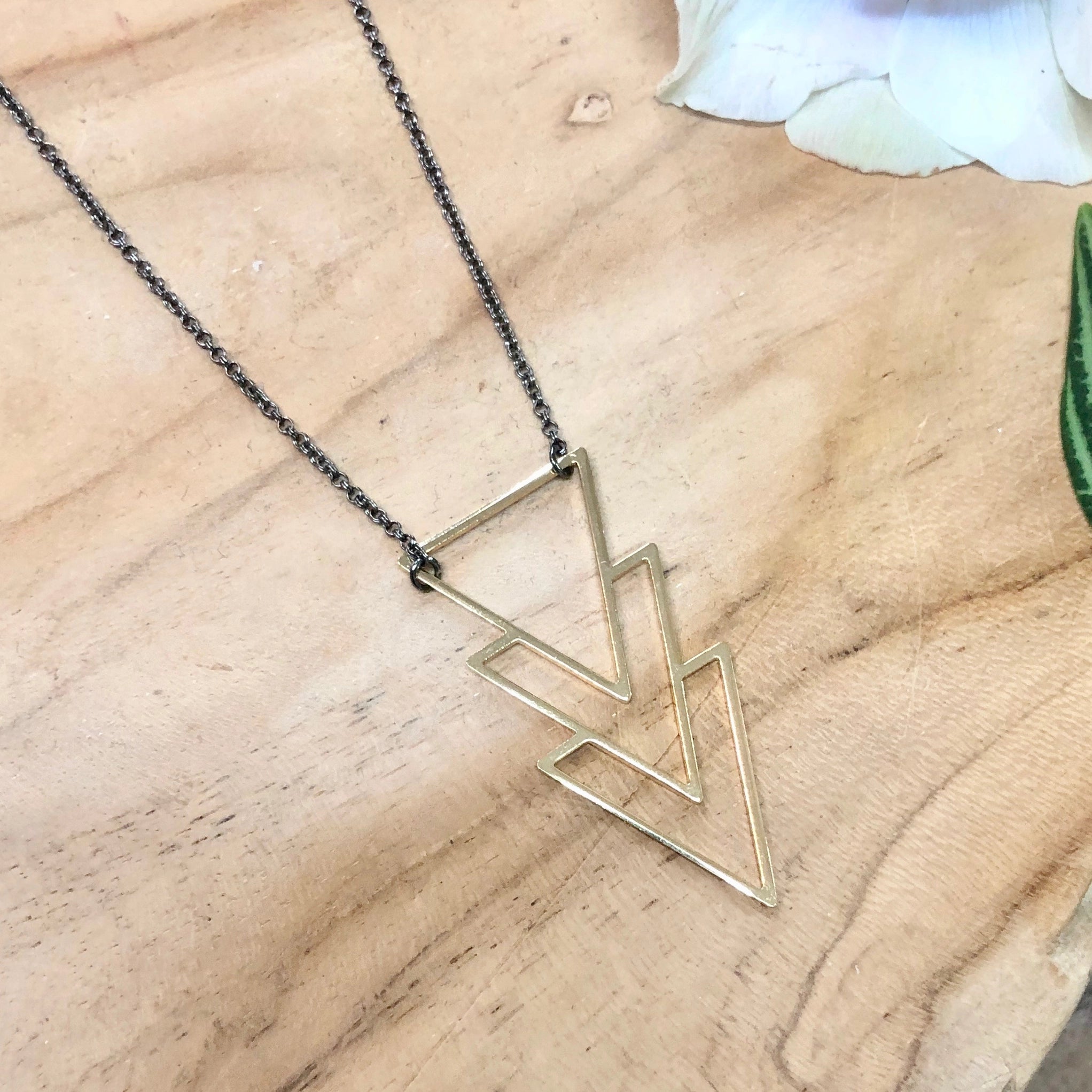 The Erin Necklace features a trio of arrows hanging delicately from a 22-24" adjustable antiqued brass necklace, with the pendant measuring .9". Handcrafted with precision and attention to detail, this necklace adds a touch of elegance and uniqueness to any outfit. Perfect for those looking to make a subtle yet stylish statement.