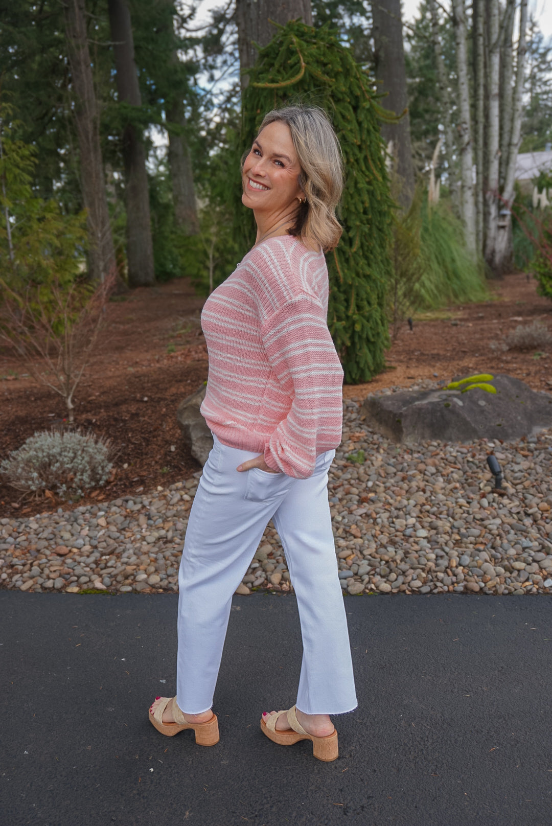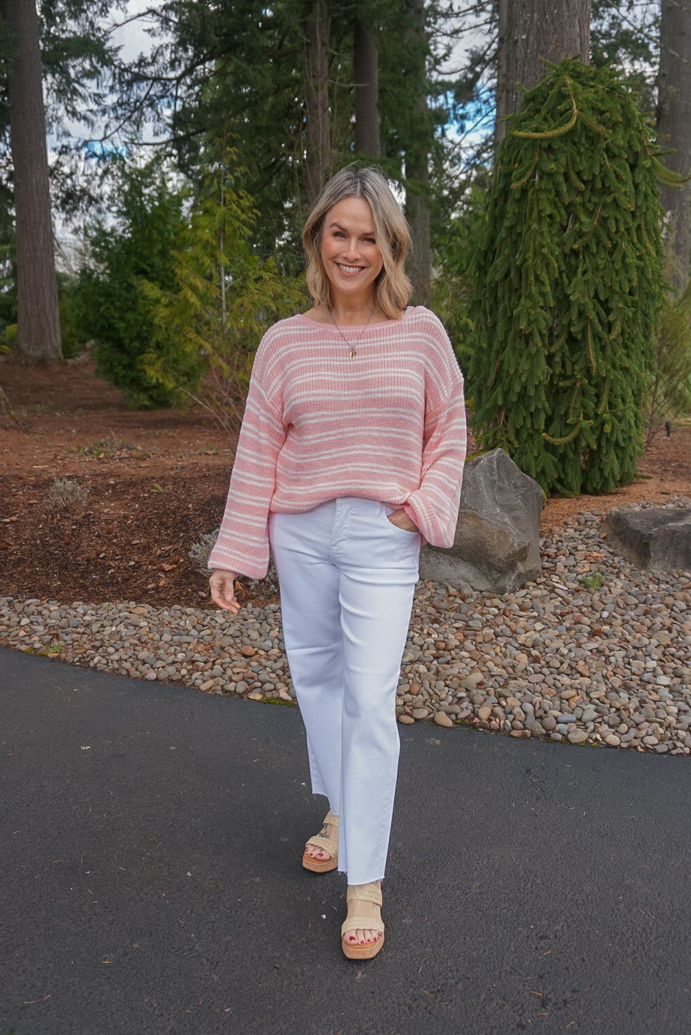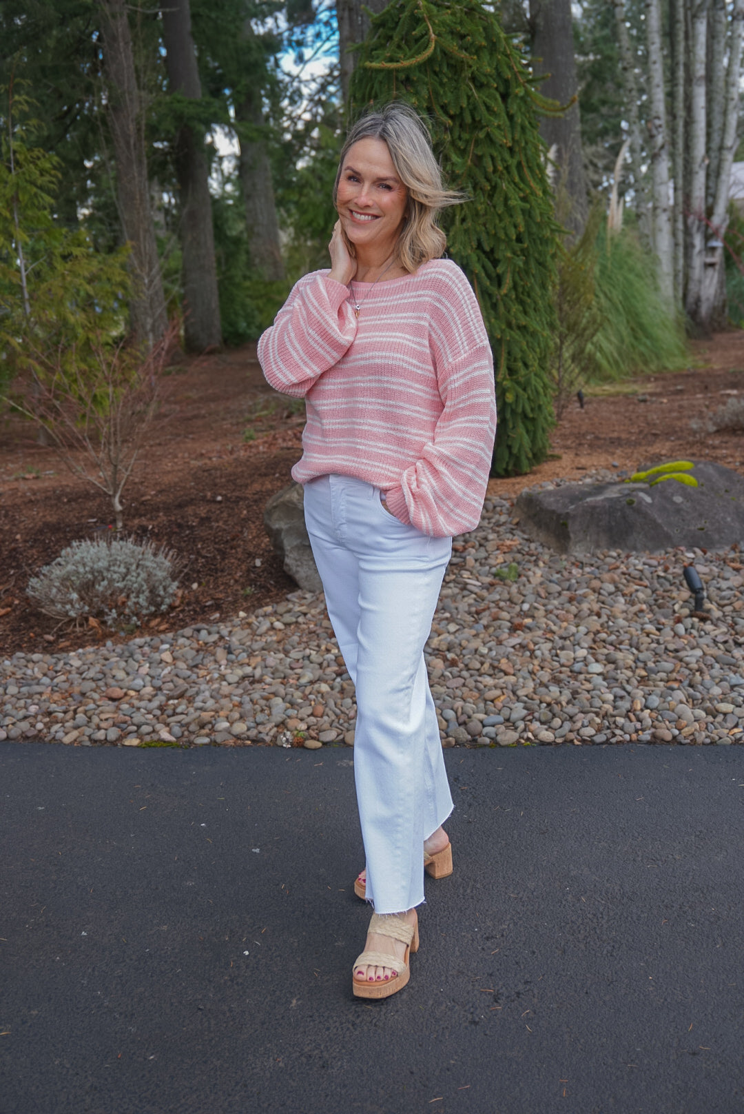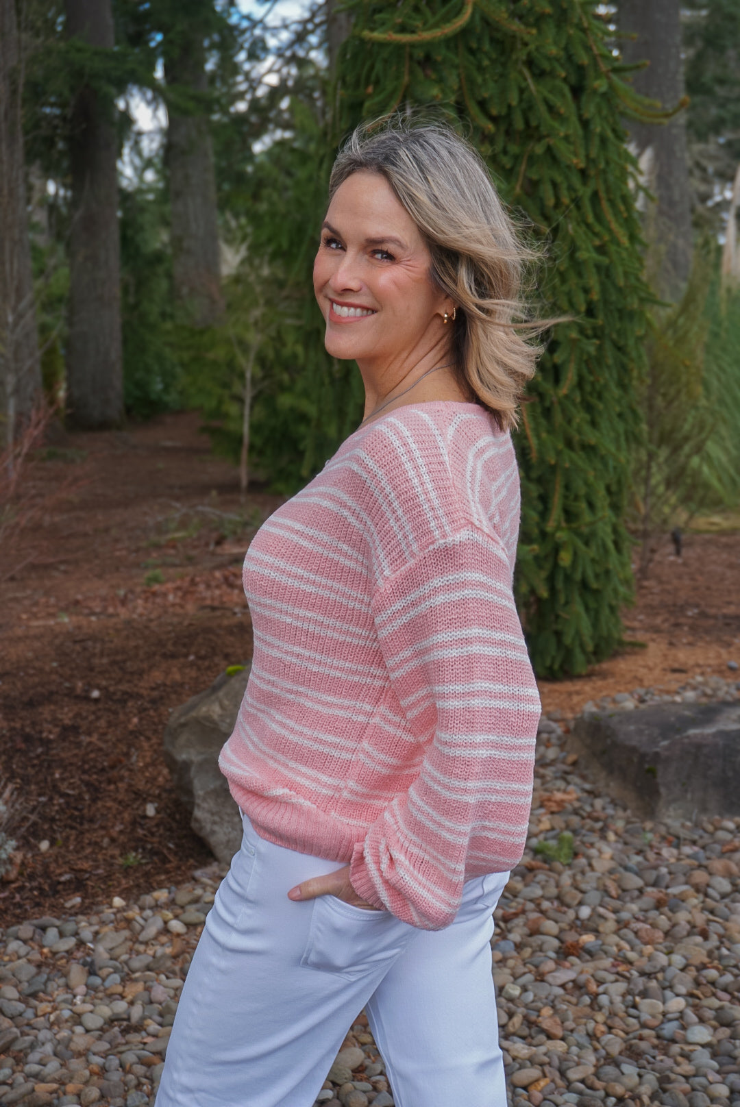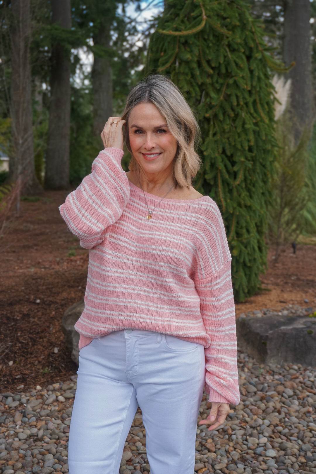 Introducing the Cyrus Sweater—a delightful twist on classic style! Its boat neck and long sleeves offer a stylish silhouette, while the stripes add a playful touch.