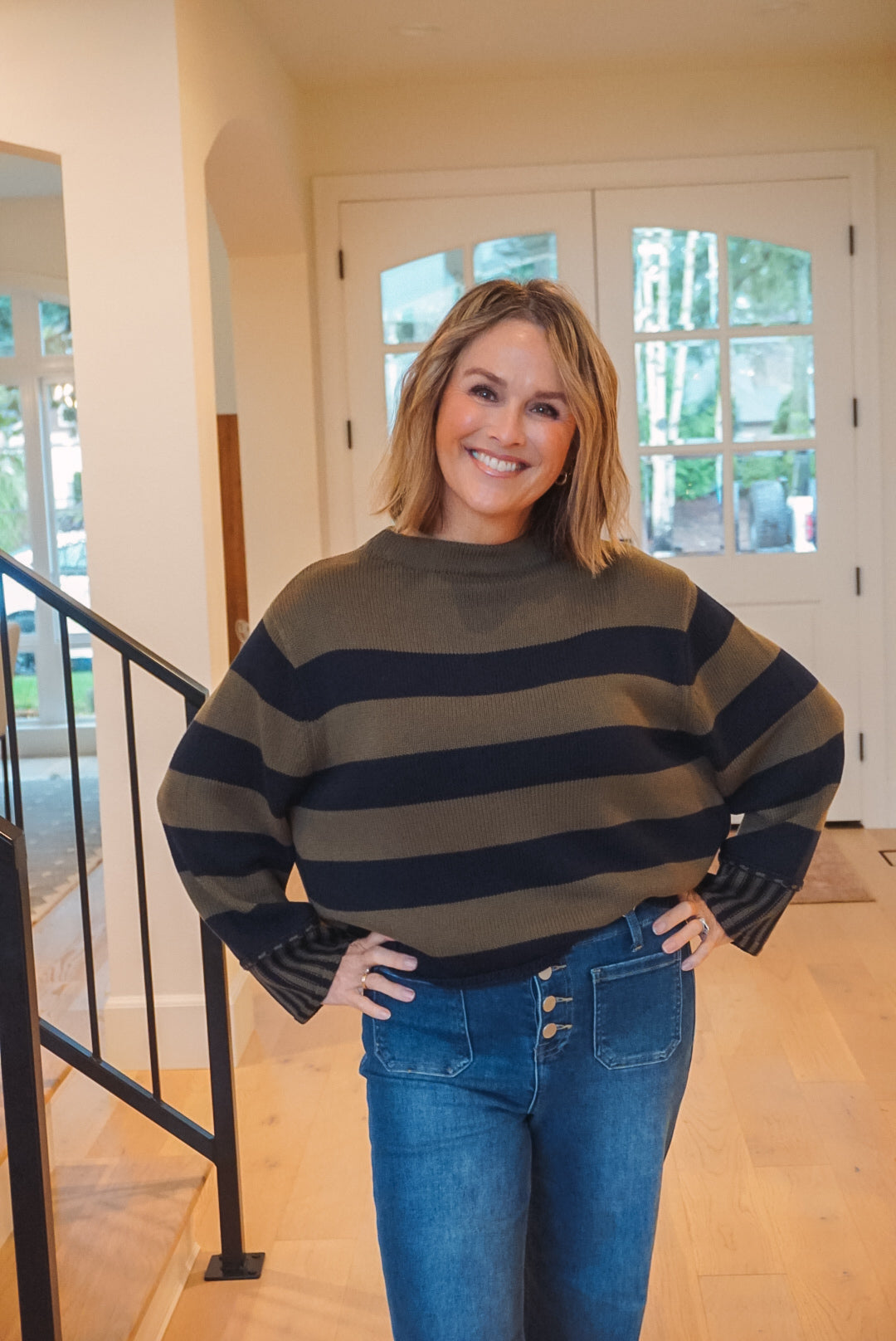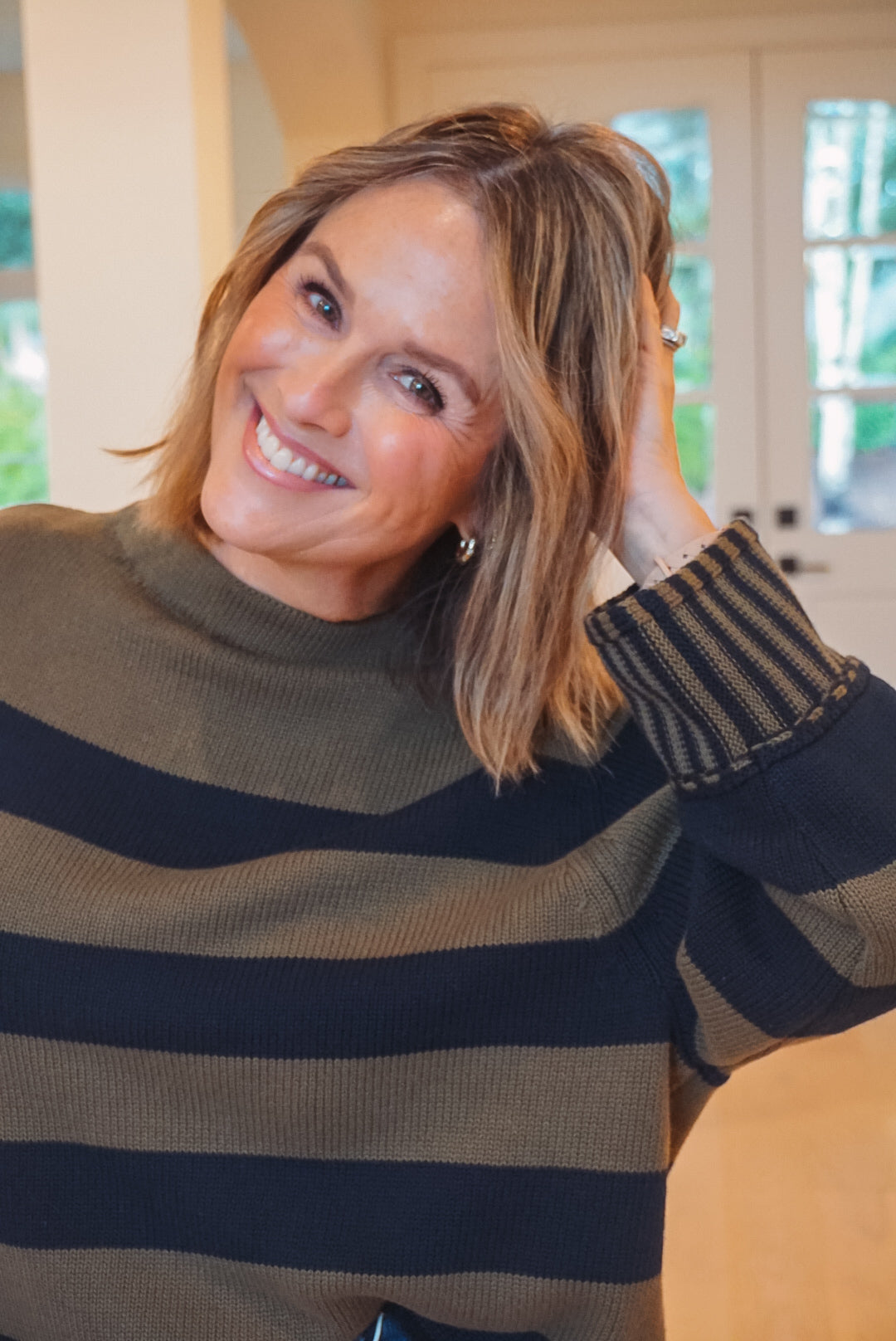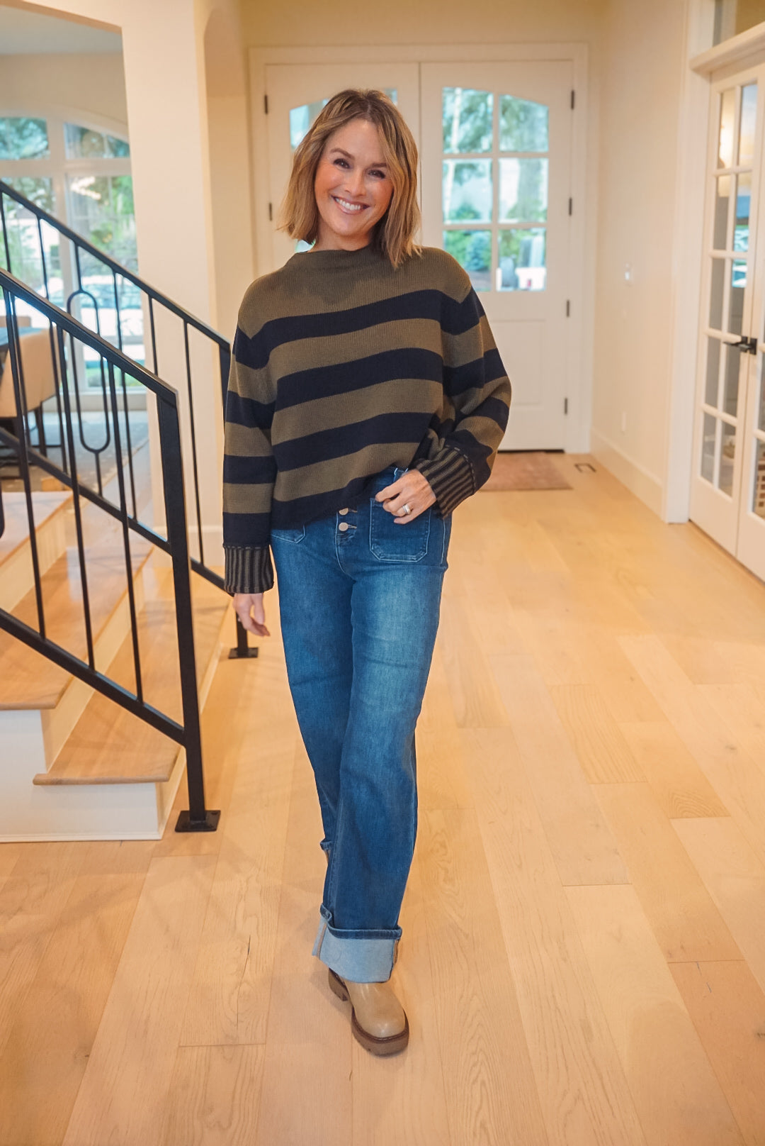 Stay warm and stylish with our Rebel Sweater! This knit sweater features a round neckline and relaxed fit for ultimate comfort. The striped print adds a touch of playfulness, while the contrast stripe on the sleeve cuffs adds a unique twist. Perfect for casual days or cozy nights in.