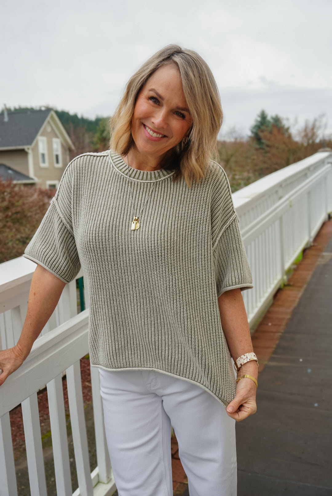 Embrace effortless style with the Amani Sweater! This relaxed-fit knit pullover features a round neckline, short sleeves, and a chic drop shoulder design. The unique washed pattern and raw edge detail add a touch of artistry, making it a perfect staple for your wardrobe. Unleash your creativity and elevate your look effortlessly!