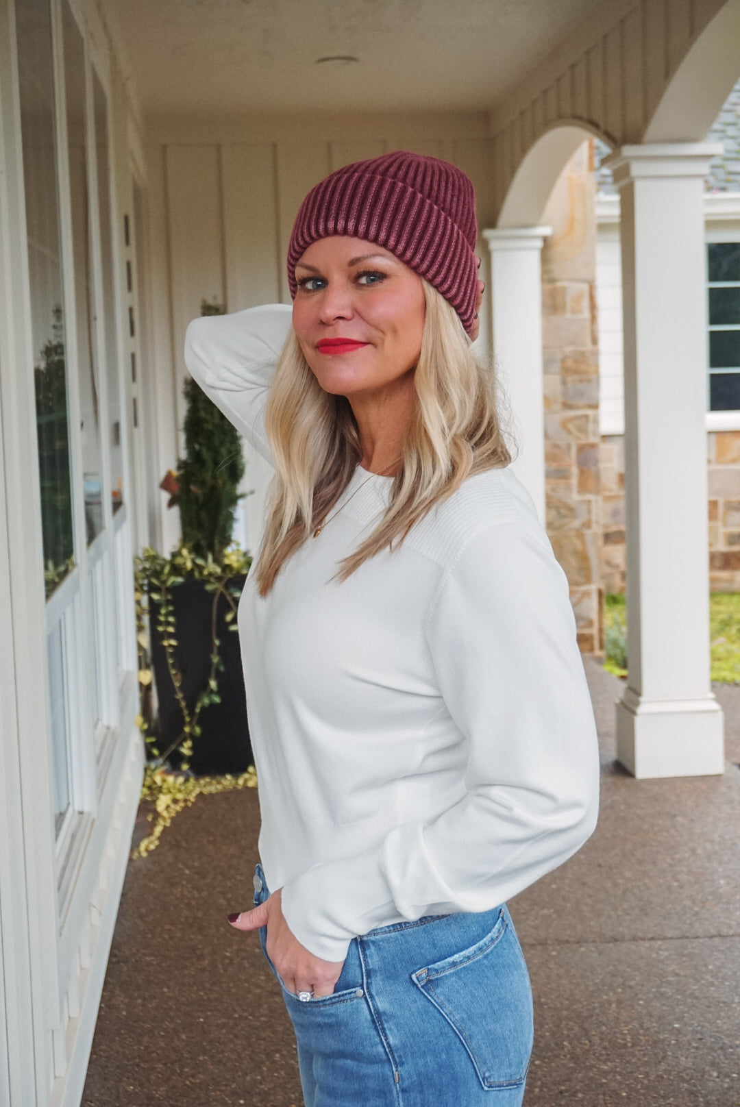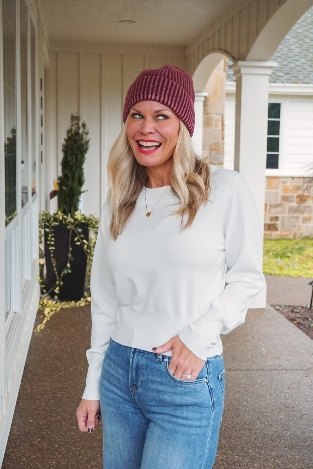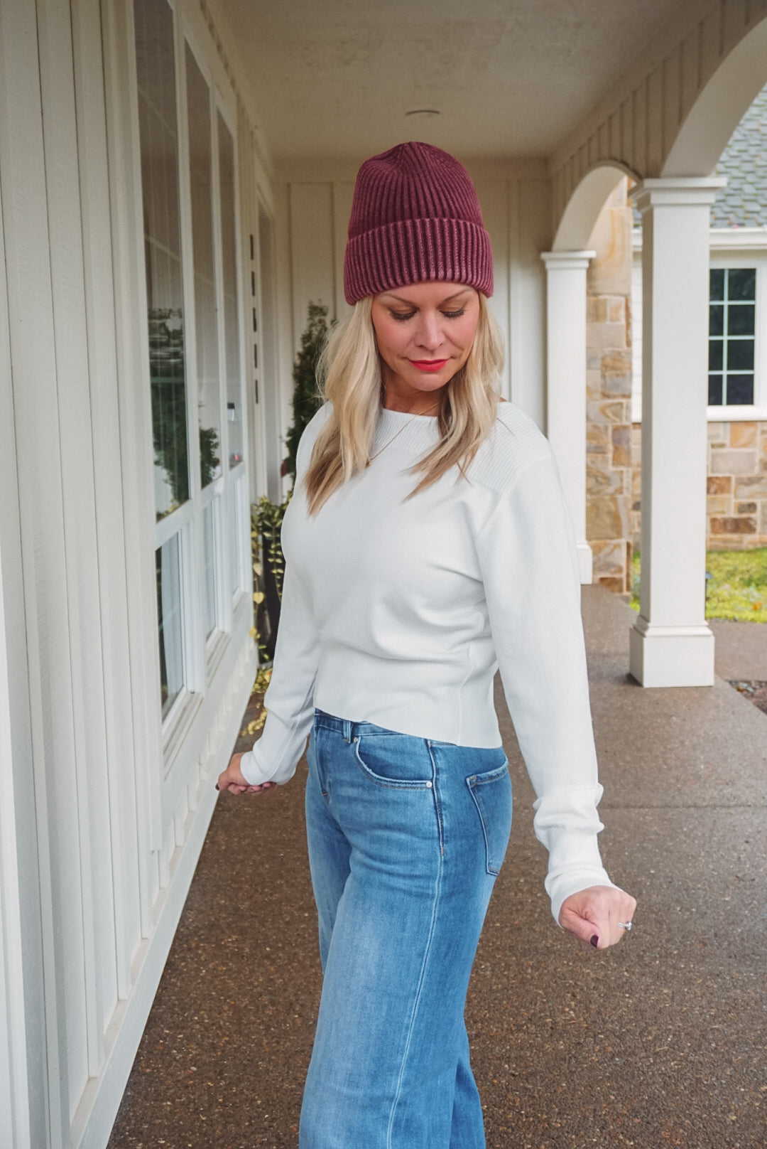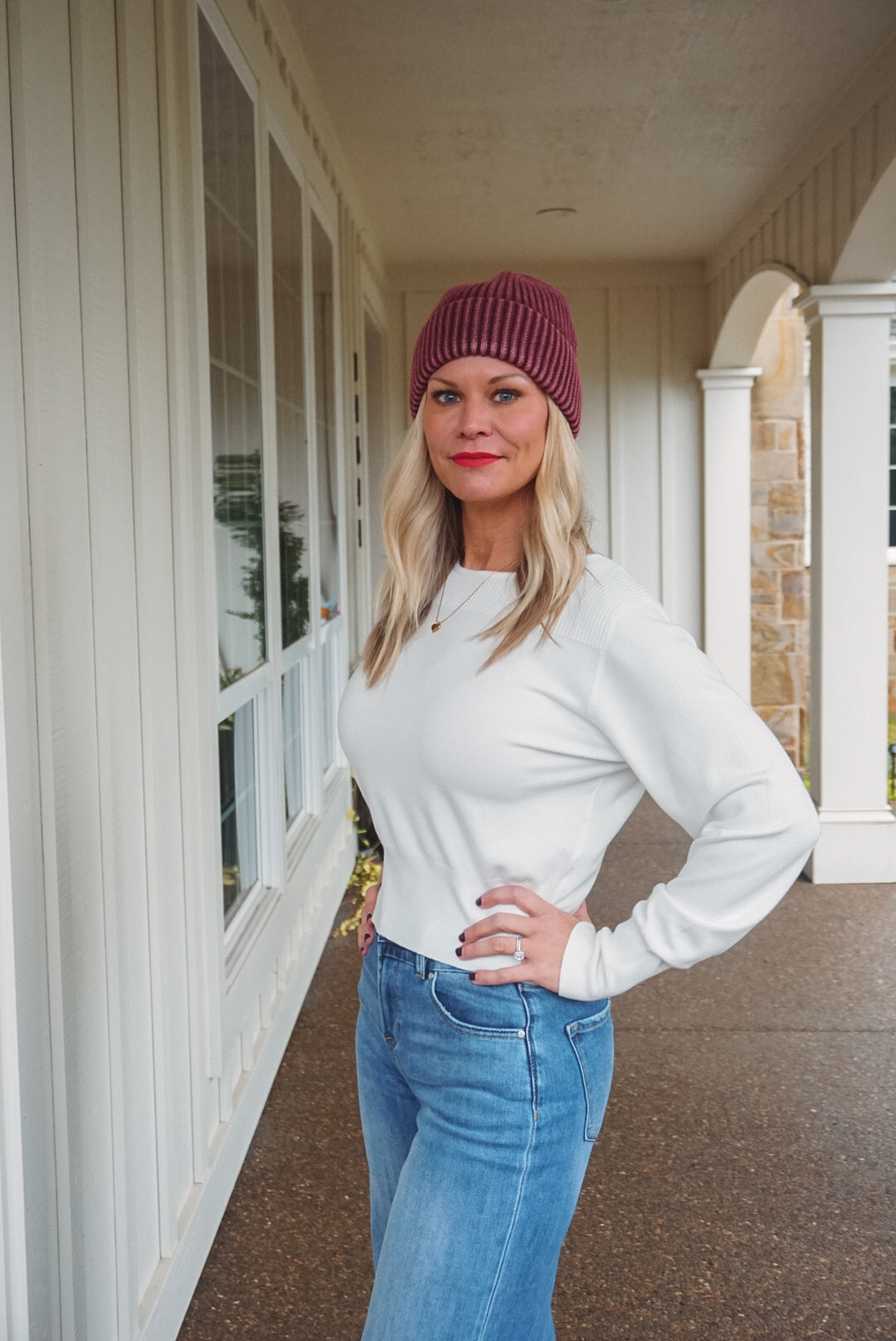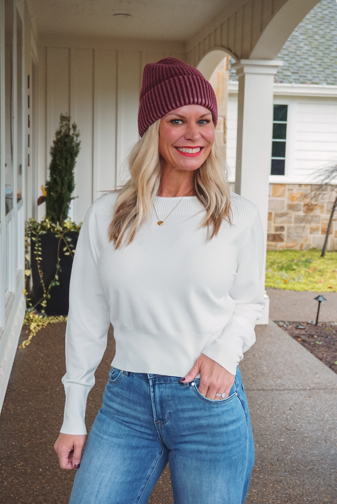 Elevate your basics with this beautifully structured crewneck dolman sweater. Designed with wide rib panel detailing across the neckline and a clean, cropped hem, this sweater offers a flattering fit that pairs effortlessly with denim or trousers. Crafted in a best-selling ultra-soft cashmere blend for an elevated hand-feel at an approachable price.