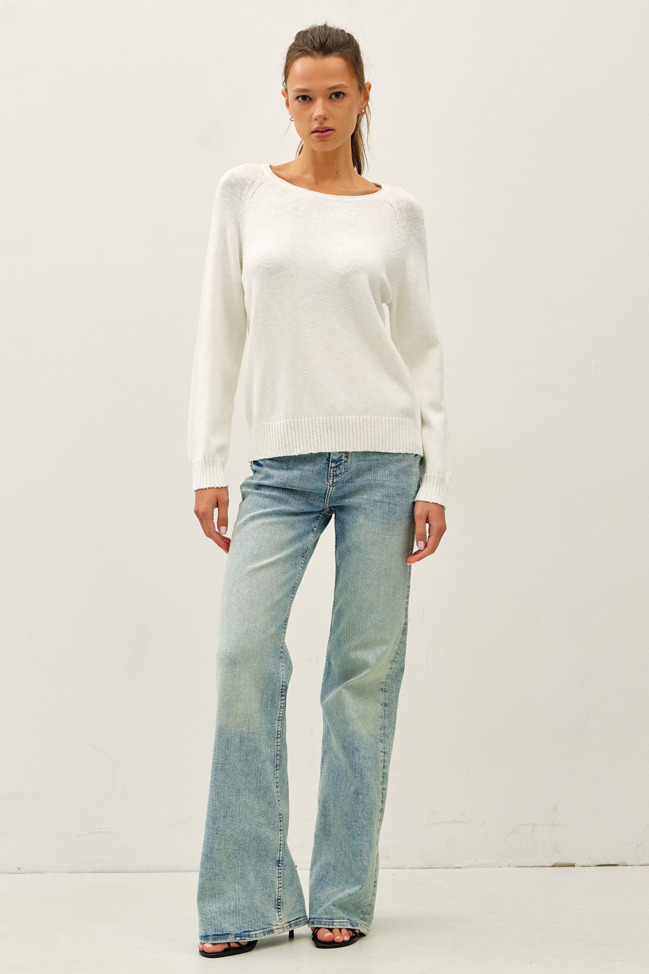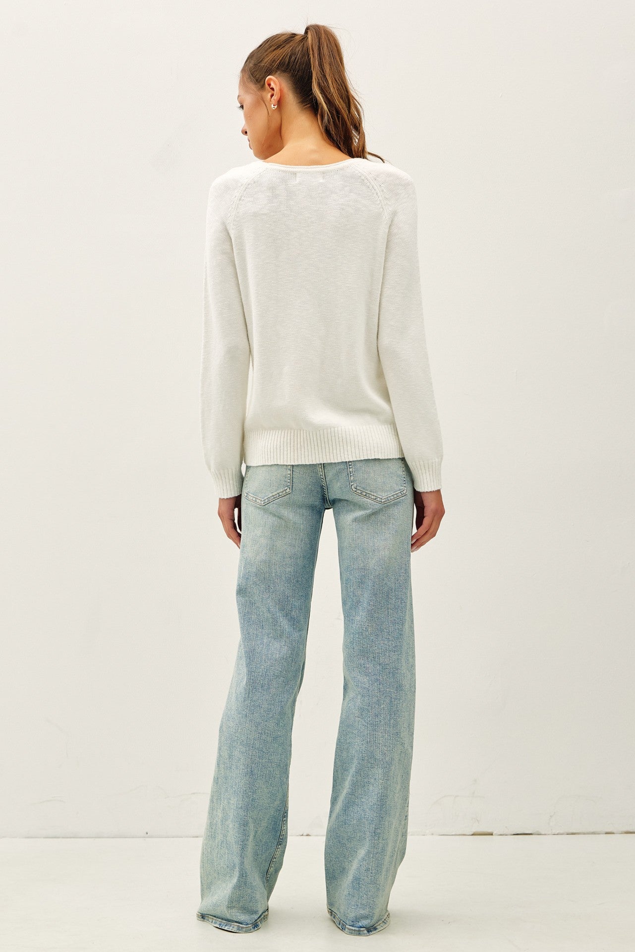 The Penelope Sweater is the perfect combination of comfort and style. Made with a lightweight slub material and a relaxed fit, it's perfect for any casual occasion. The raglan sleeves, ribbed cuffs, and rolled neckline add a unique touch to this classic round neck design. Perfect to pair with any bottom—from your favorite denim to skirts!