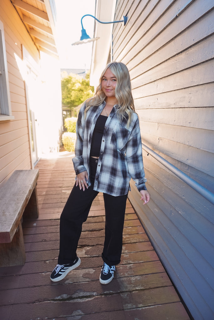 Stay comfy and stylish all day long in our Alba Plaid Shirt! With a classic flannel design, button-down front, and a single chest pocket, this shirt offers convenience and style. The long sleeves, drop shoulder, and relaxed fit provide a comfortable, oversized look. Made with ultra-soft fabric, it's the perfect below-the-hip length for a cozy, laid-back feel.