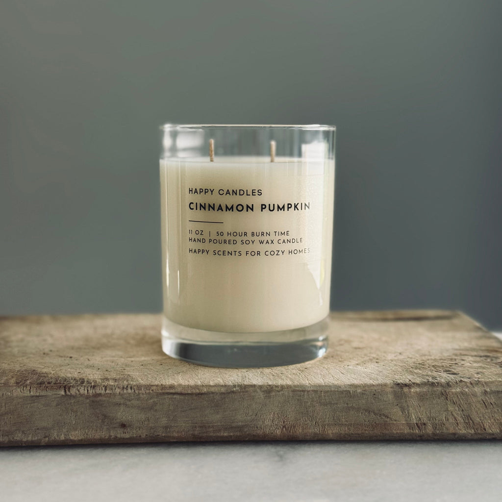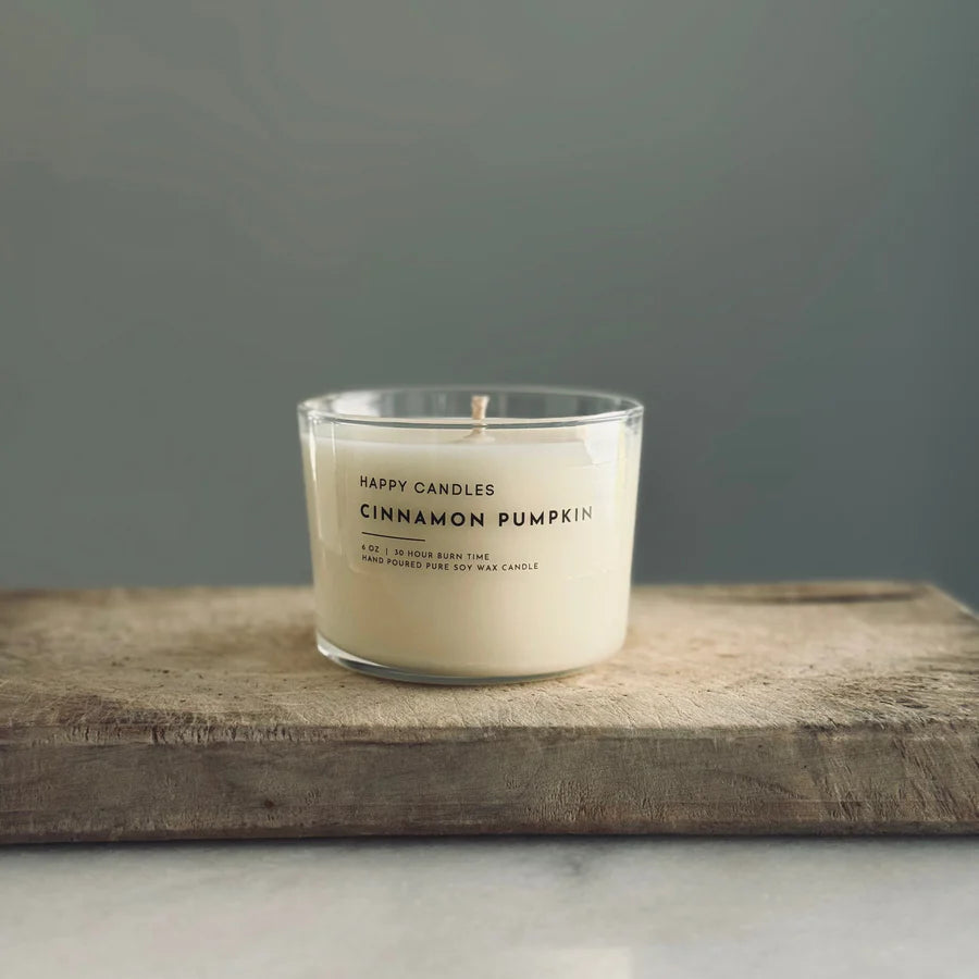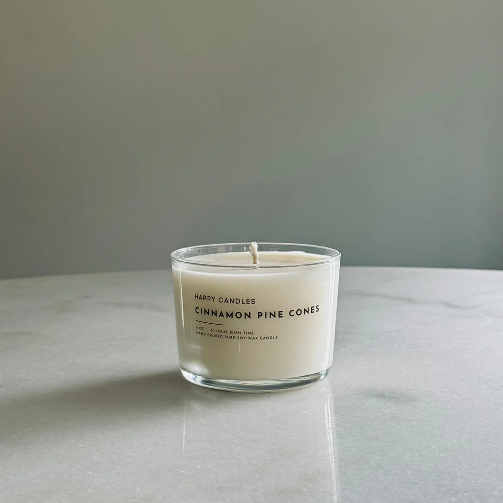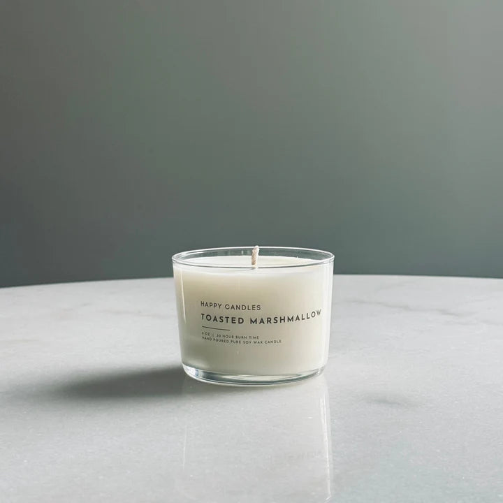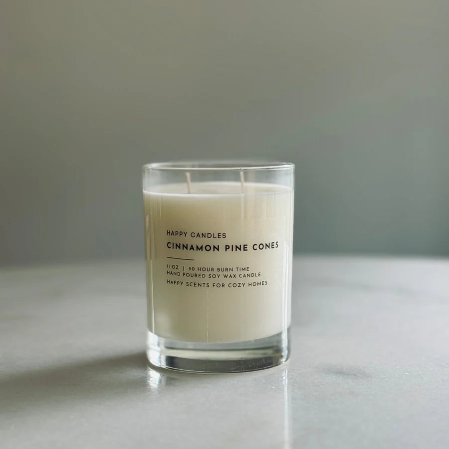 HAPPY CANDLES are hand poured with 100% soy wax and clean fragrance oils. They don't use chemicals to enhance the fragrance, nor do they blend the wax with other types of wax. They keep it clean and simple and that makes us HAPPY for us and you!