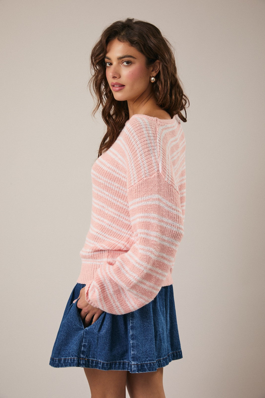 Introducing the Cyrus Sweater—a delightful twist on classic style! Its boat neck and long sleeves offer a stylish silhouette, while the stripes add a playful touch.