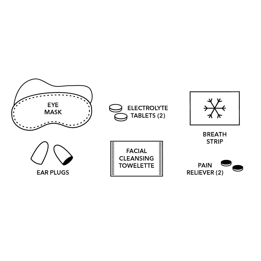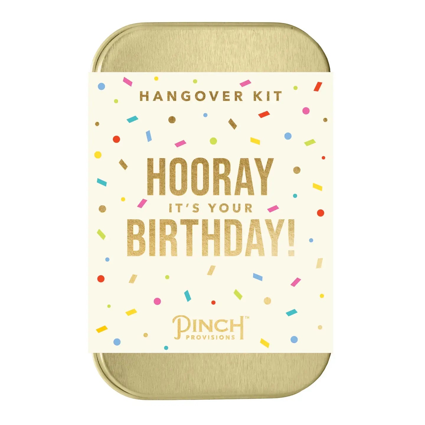 Hooray it's your birthday! Our Hangover Kits are the perfect solution for when you might have one too many. Now in a mini tin size, each kit contains an eye mask, ear plugs, a facial cleansing towelette, pain reliever, electrolytes, and breath drops. Perfect gift!