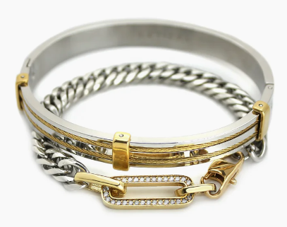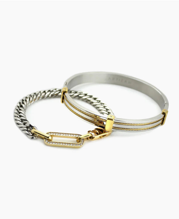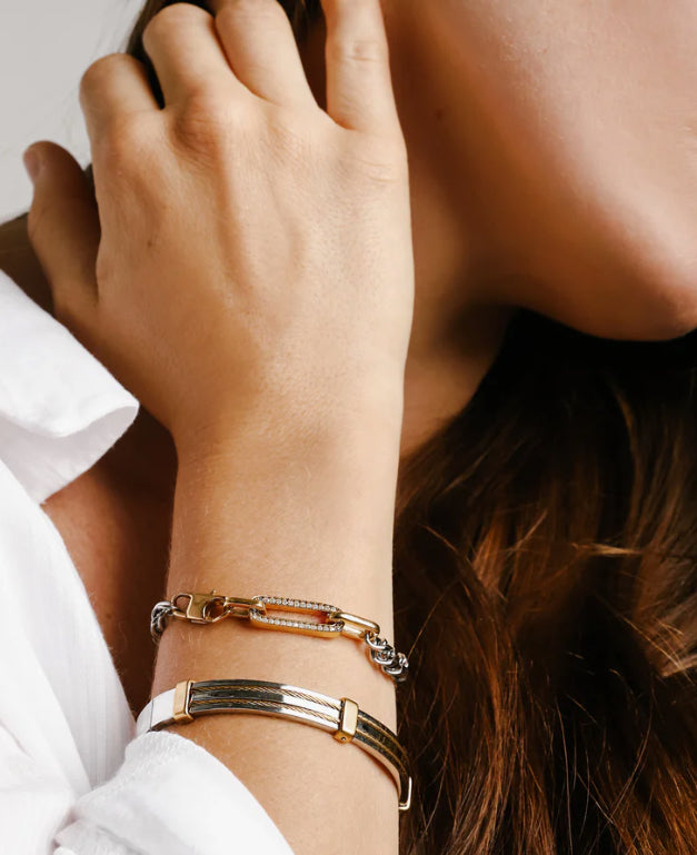 Elevate your style with this stunning 18K gold-plated & stainless steel stack with dazzling zirconia accents. Its 7" length and 7mm width make it a perfect fit for wrists up to 6.5”. This piece captures elegance and versatility, transforming any outfit with a touch of luxury!