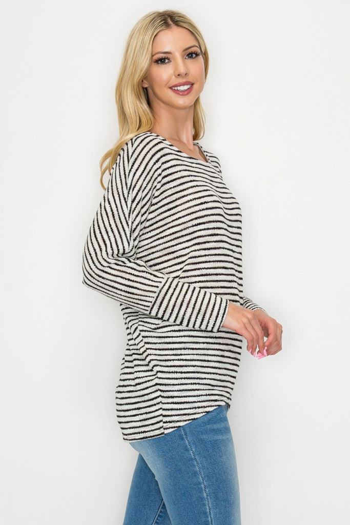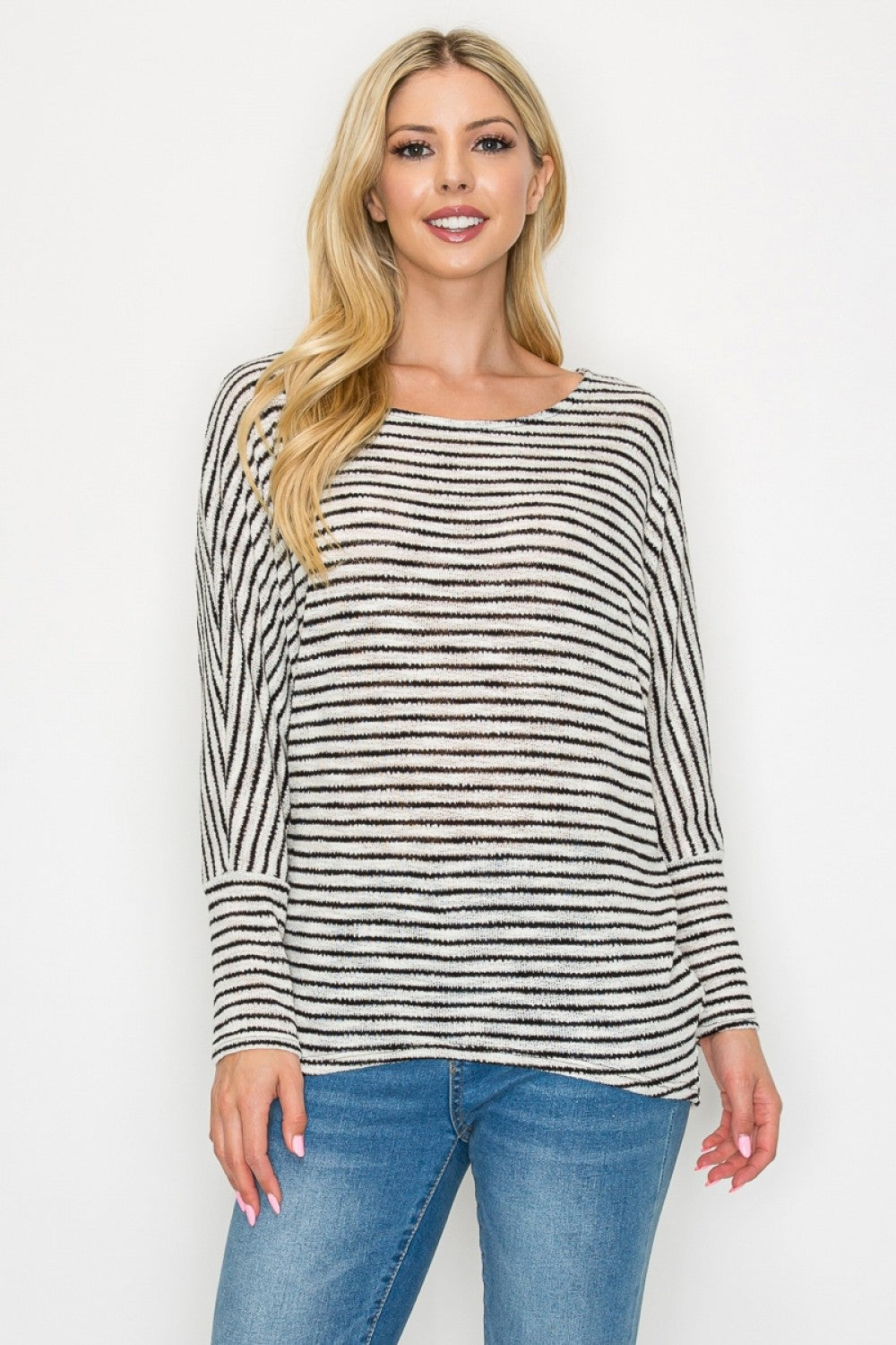 Stay stylish and comfortable with the Jude Dolman top. With a boat neckline and long dolman sleeves, this top offers a relaxed fit and a classic striped pattern. Perfect for any occasion, this top will elevate your wardrobe with its effortless style.