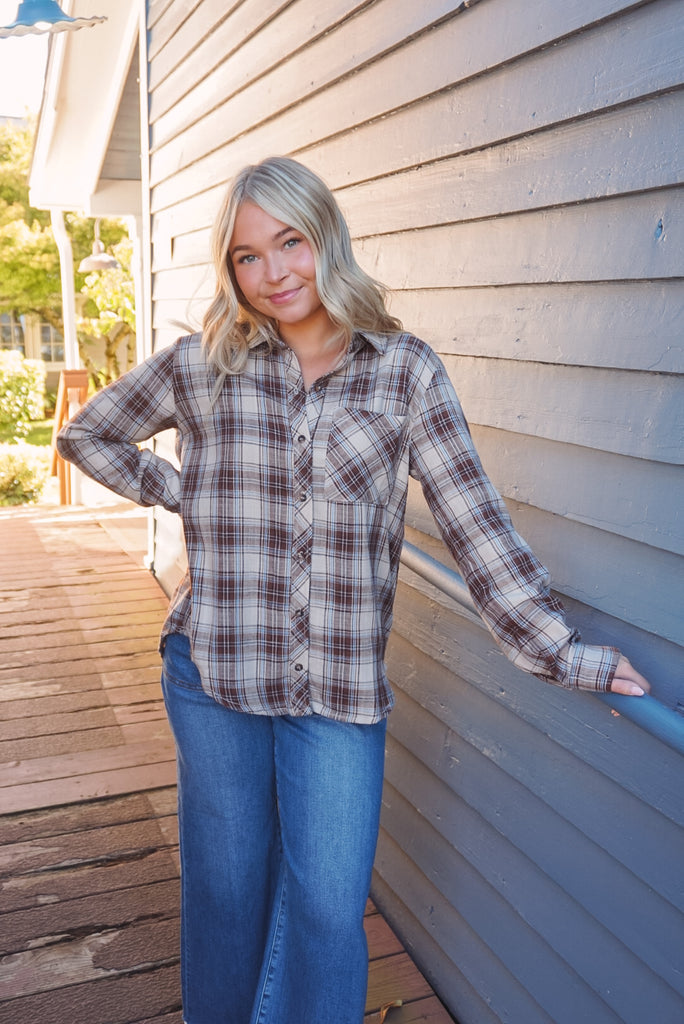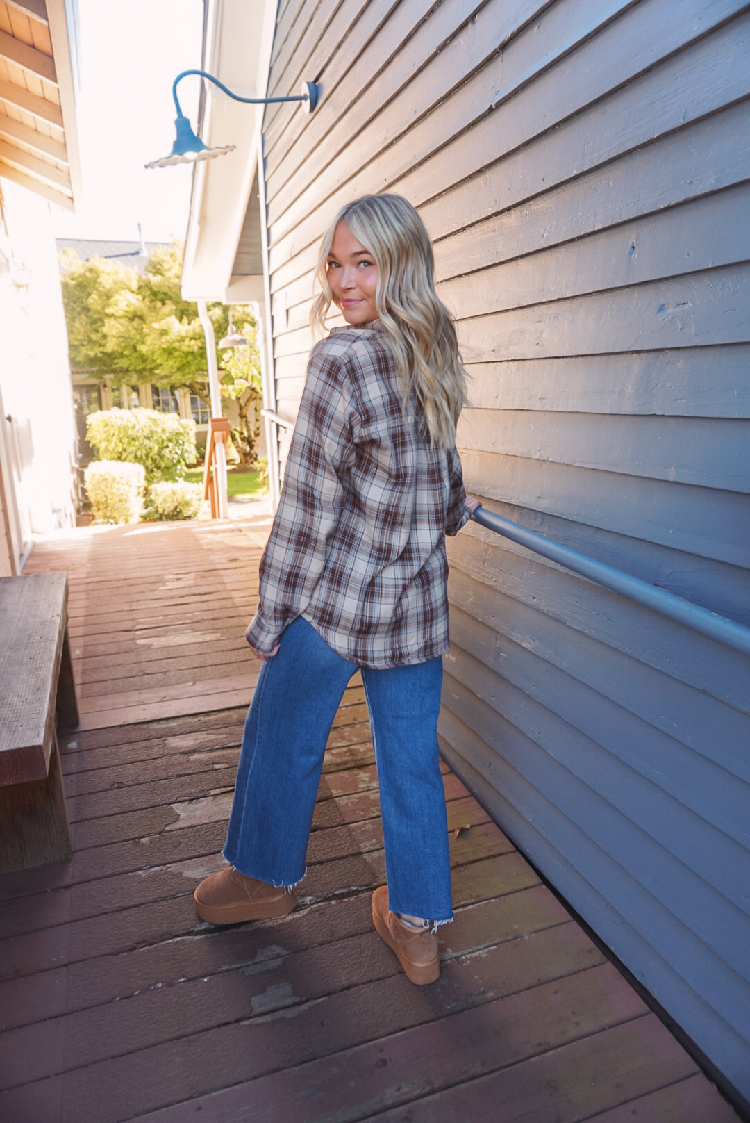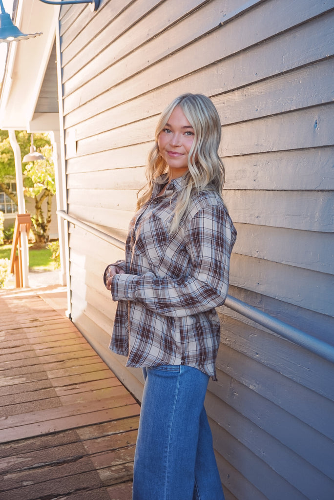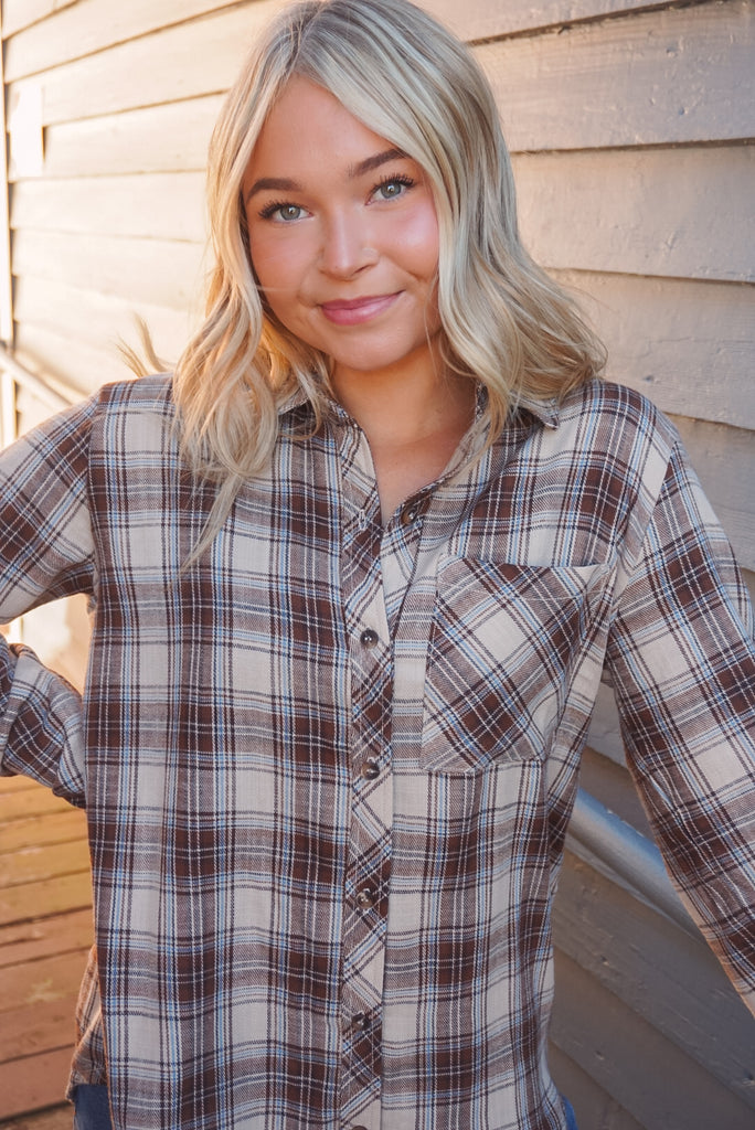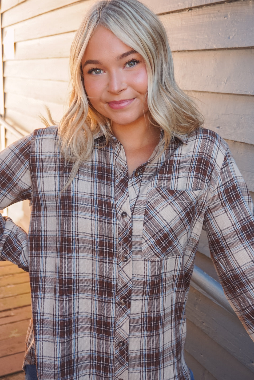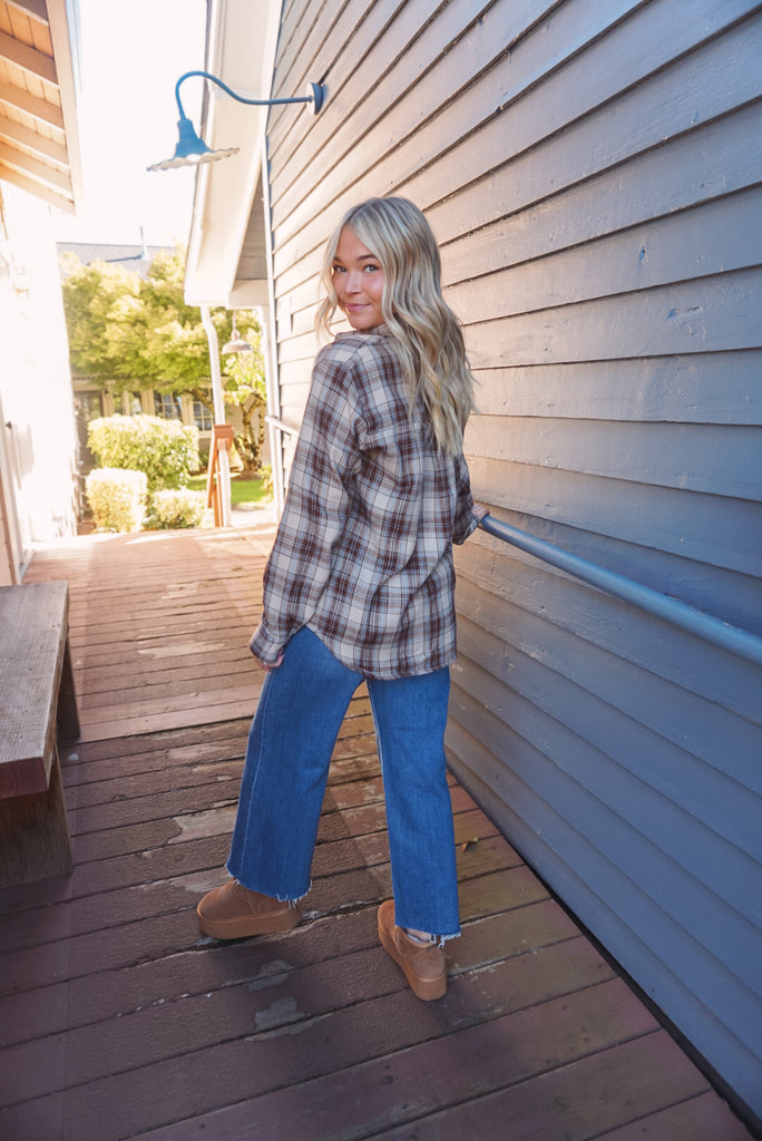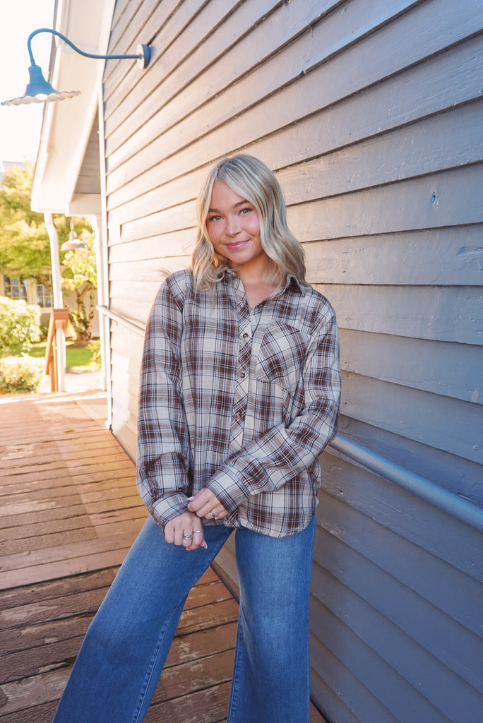 This Juniper Plaid Shirt is a playful twist on a classic flannel. With a relaxed, oversized fit and ultra-soft fabric, it's both comfortable and stylish. Features include a button down front, single chest pocket, and drop shoulder for a laid-back vibe. Complete with a round hem and side slit for extra flair.