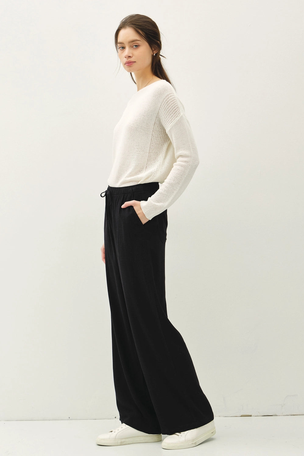 Experience effortless style and incredible comfort with the Morgan Wide Leg Linen Pant. Designed with a relaxed fit and a lightweight linen blend, these pants are perfect for warm weather. The drawstring and elastic waistband ensure a perfect fit, while the pockets add practicality. Embrace a breezy, laid-back vibe every day!