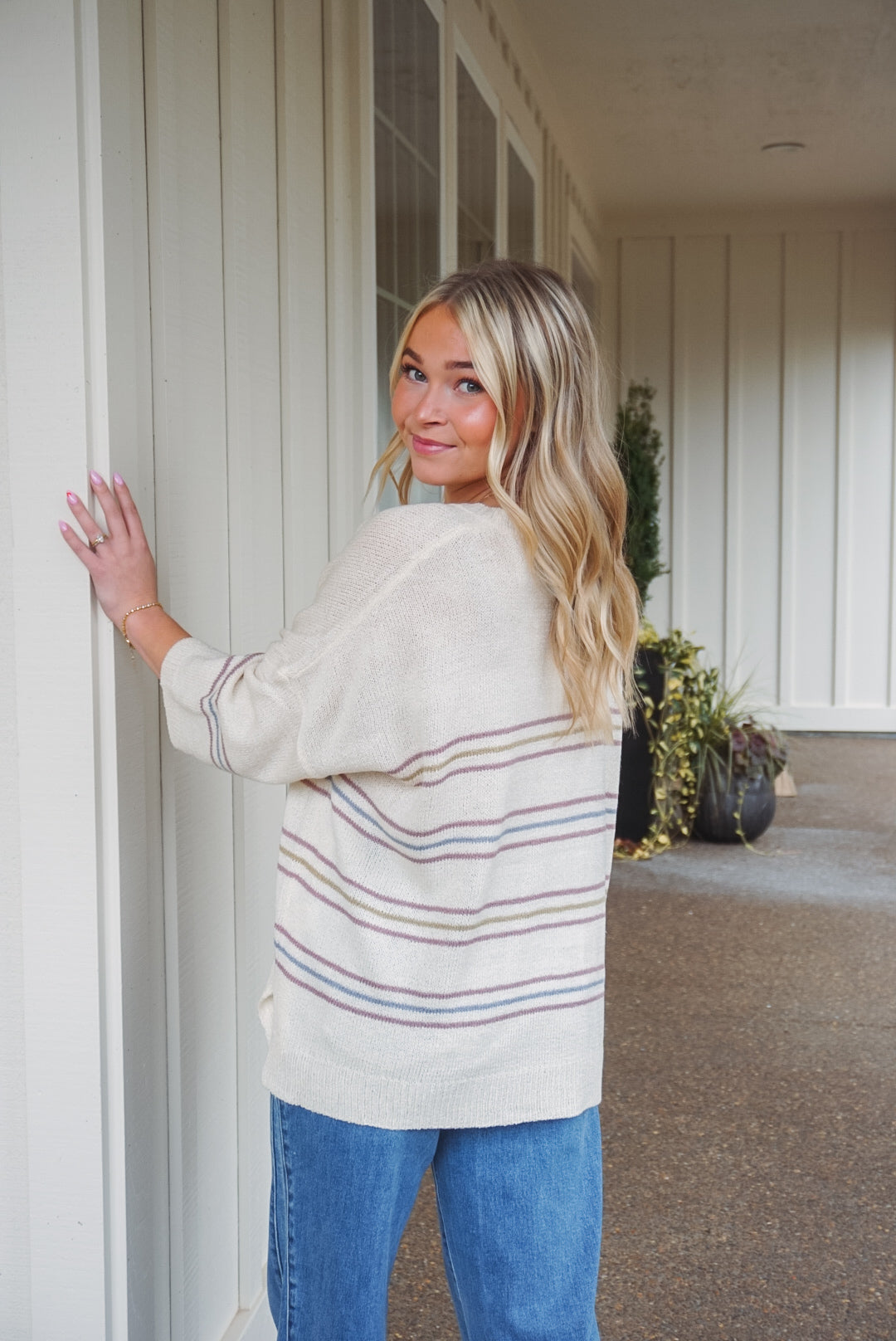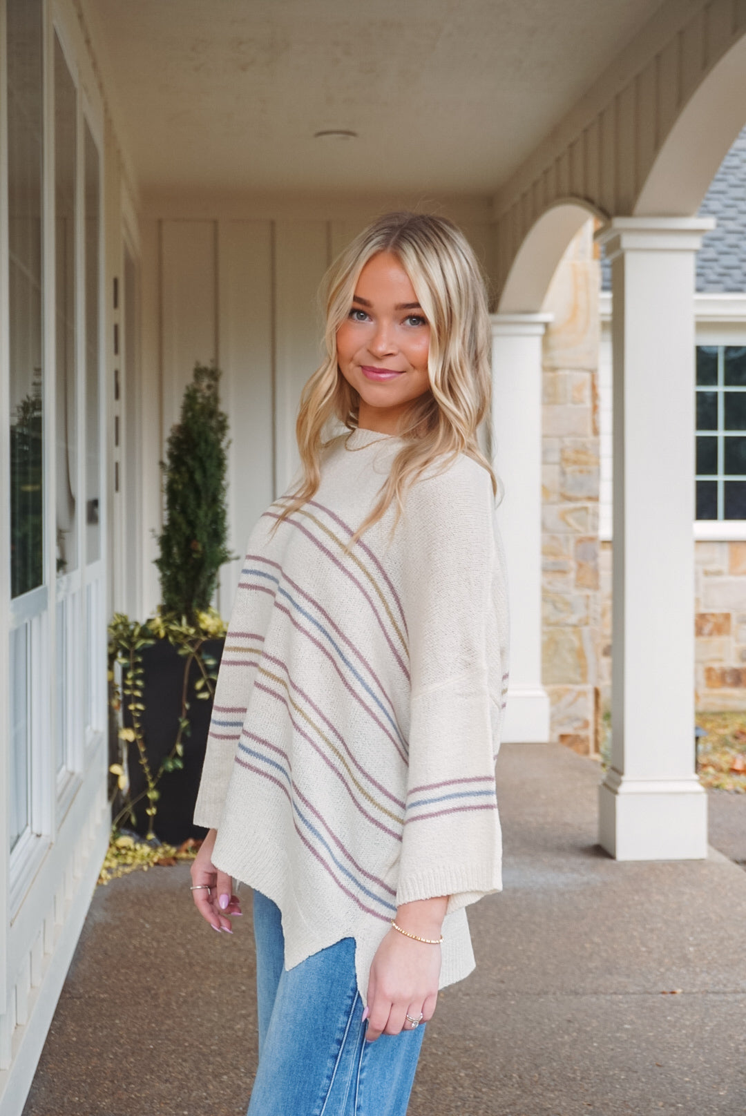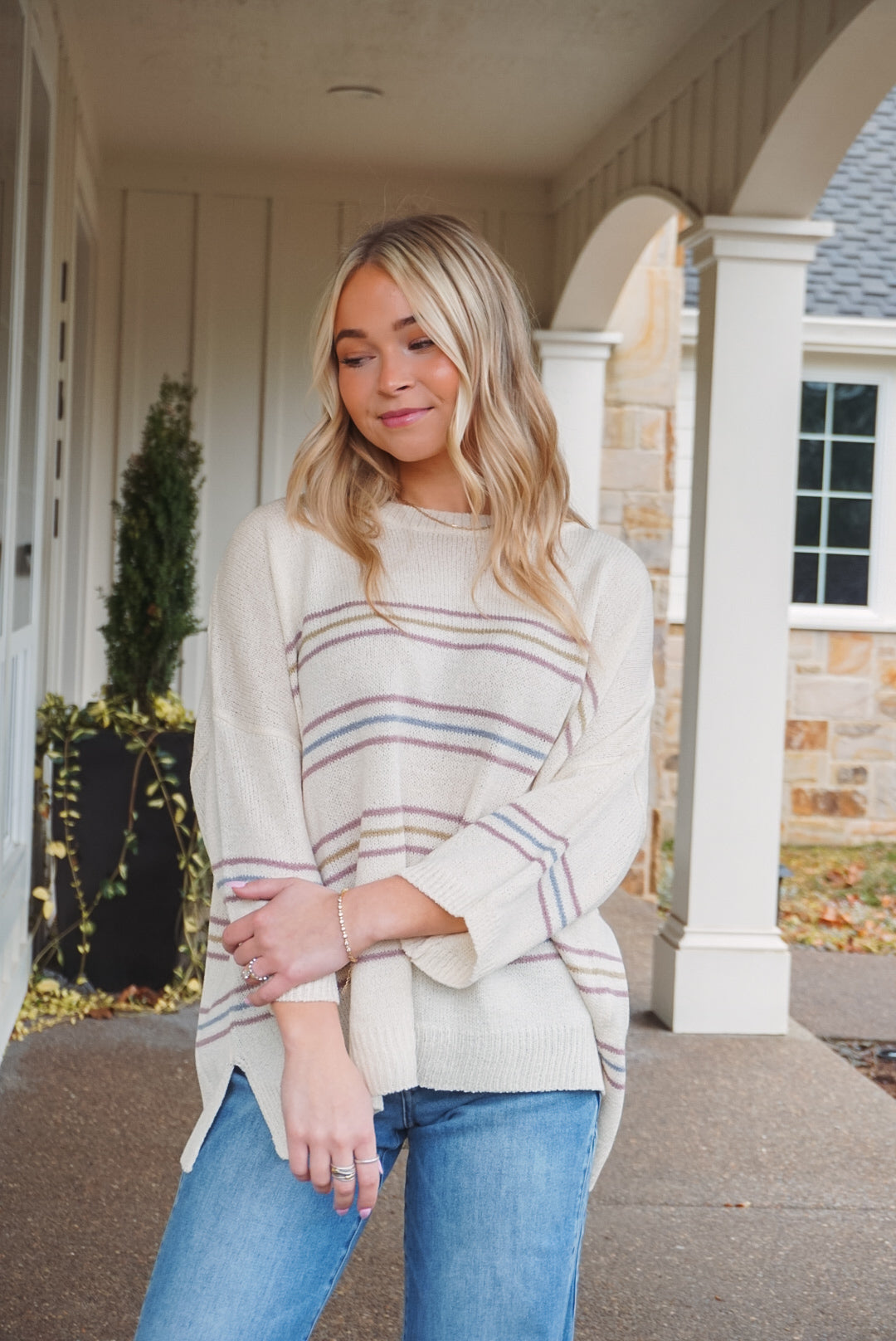 Embrace effortless style with the Scout Stripe Sweater! Its lightweight fabric and oversized fit ensure comfort during those sunny spring and summer days. The trendy striped pattern, drop shoulder design, and elbow-length sleeves create a relaxed vibe, while the side slit and ribbed hem add a touch of flair. Perfect for casual outings or lounging, this sweater invites you to express your unique style!