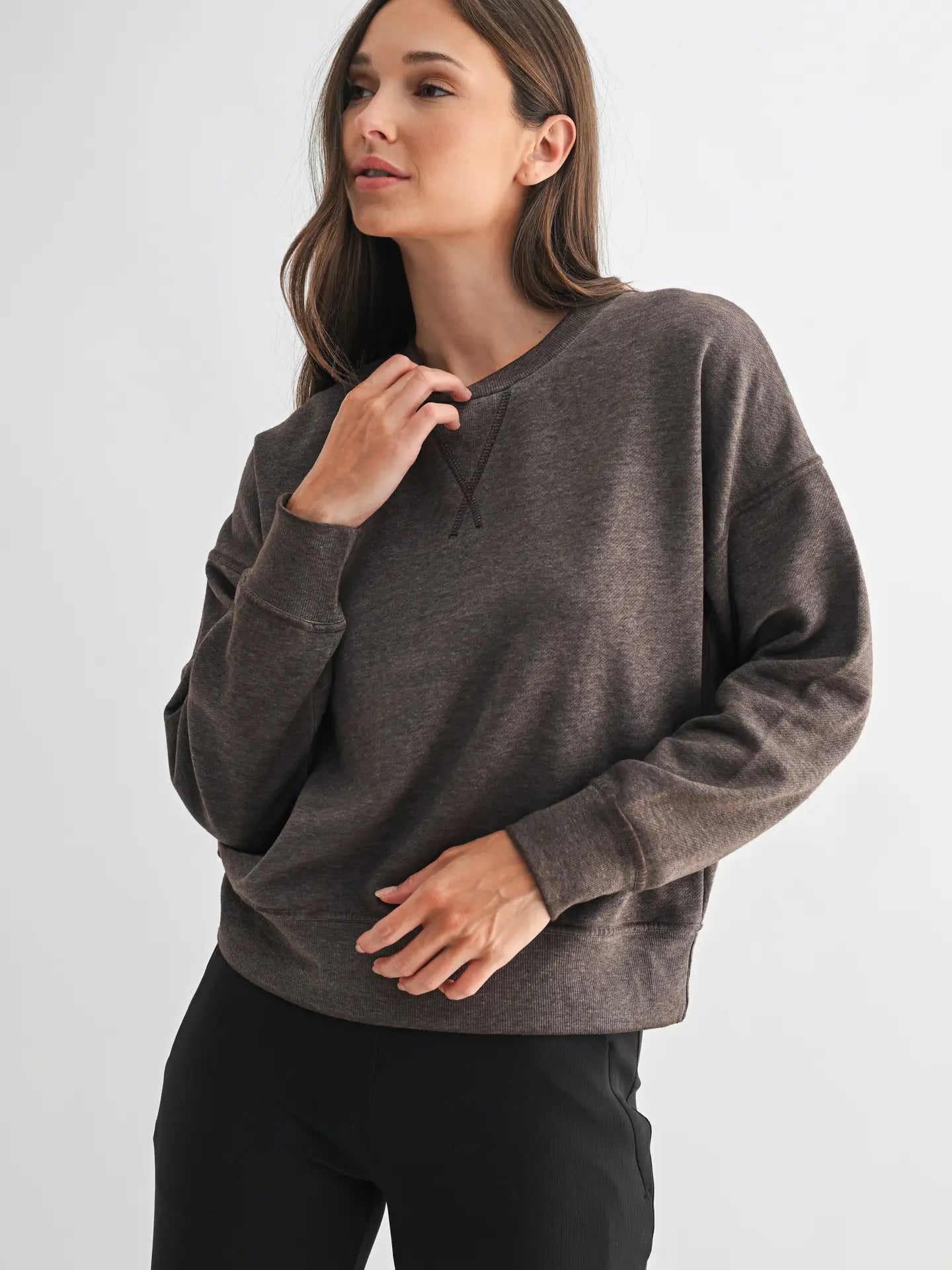 Crafted from soft burn-out fleece, this classic crew style offers a cozy feel with a touch of vintage charm. The sporty cross V stitching at the neck adds a distinctive detail that sets this sweatshirt apart. Whether you're layering up or wearing it solo, the Solstice Pullover is the perfect blend of comfort and style for any casual occasion.
