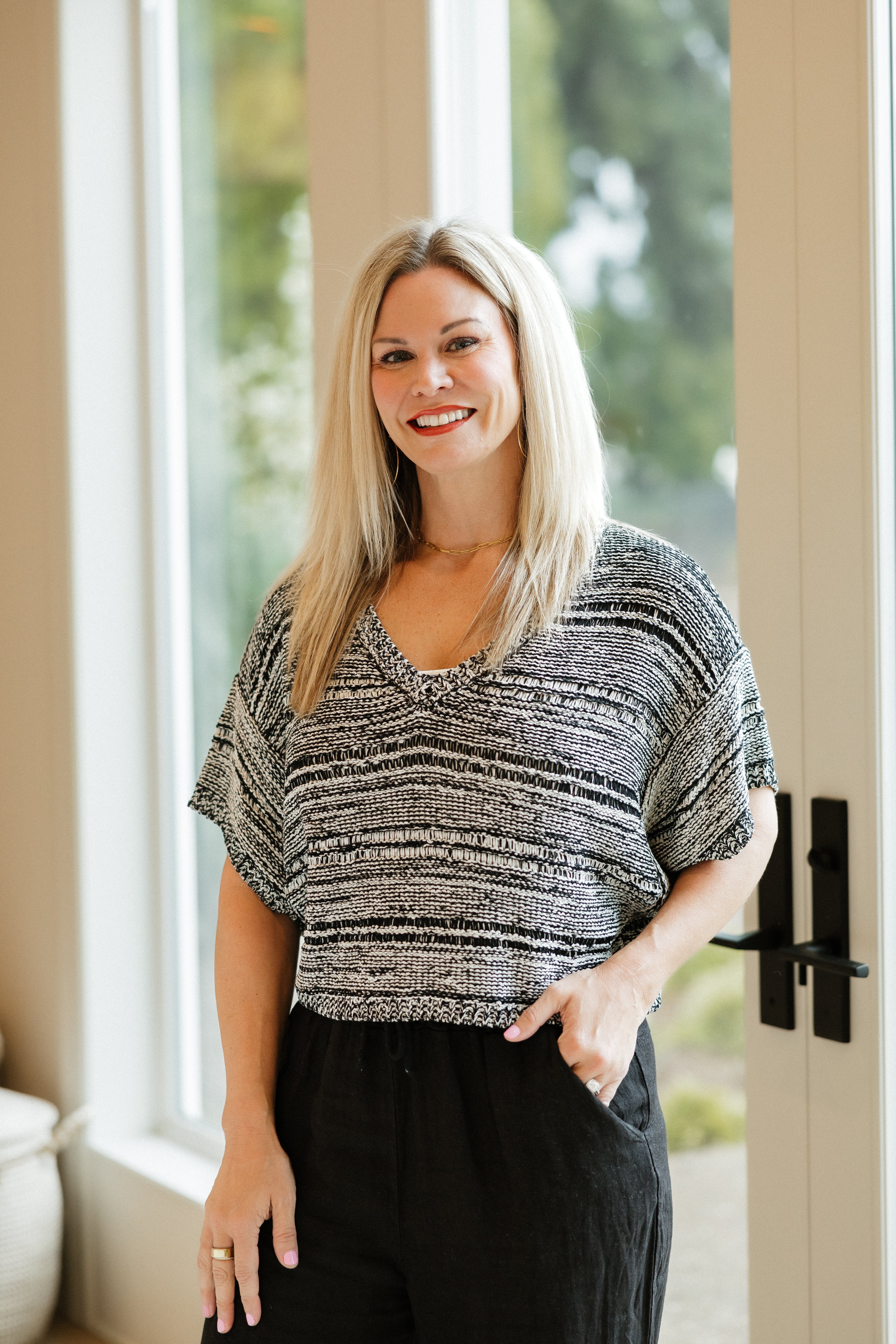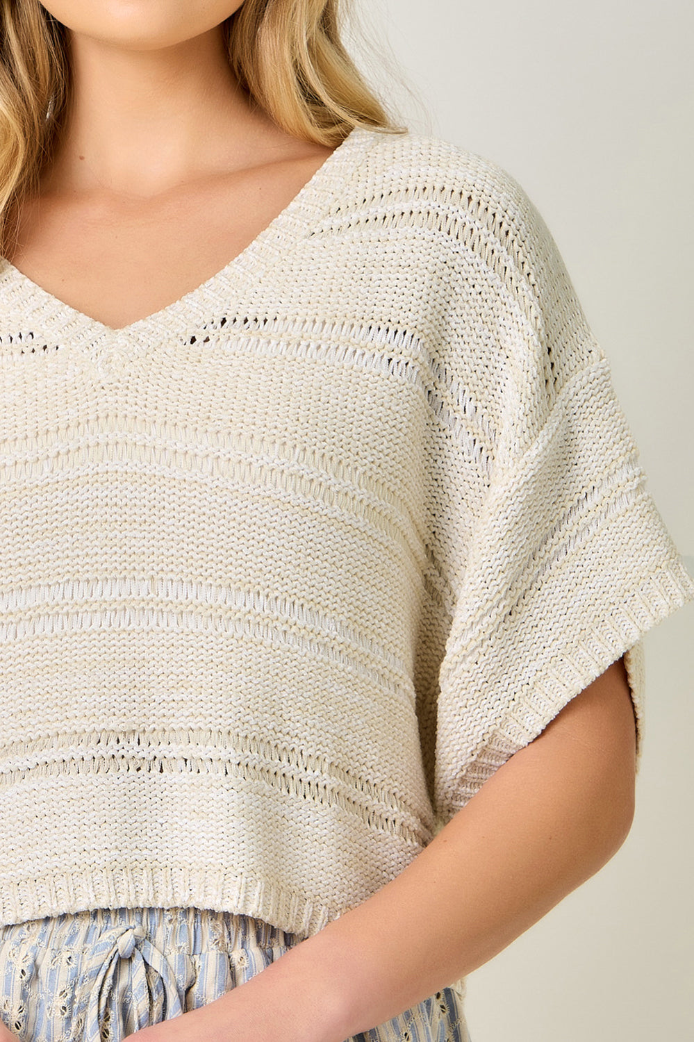 Meet the Sprina Sweater, your new cozy companion for those days when you want to look chic without the effort. With a relaxed fit, drop shoulders, and a V-neck, this boxy, cropped gem lets you channel your inner fashionista while staying comfy enough for a Netflix binge. Perfect for layering or rocking solo—your choice!